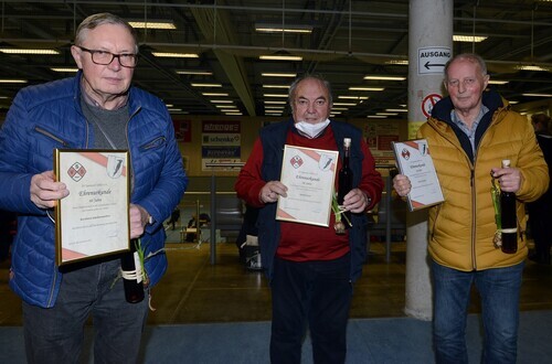 | Für langjährige Mitgliedschaft wurden Bernhard Jakobtorweihen (von links), Rudolf Grote und Walter Drücker geehrt. |