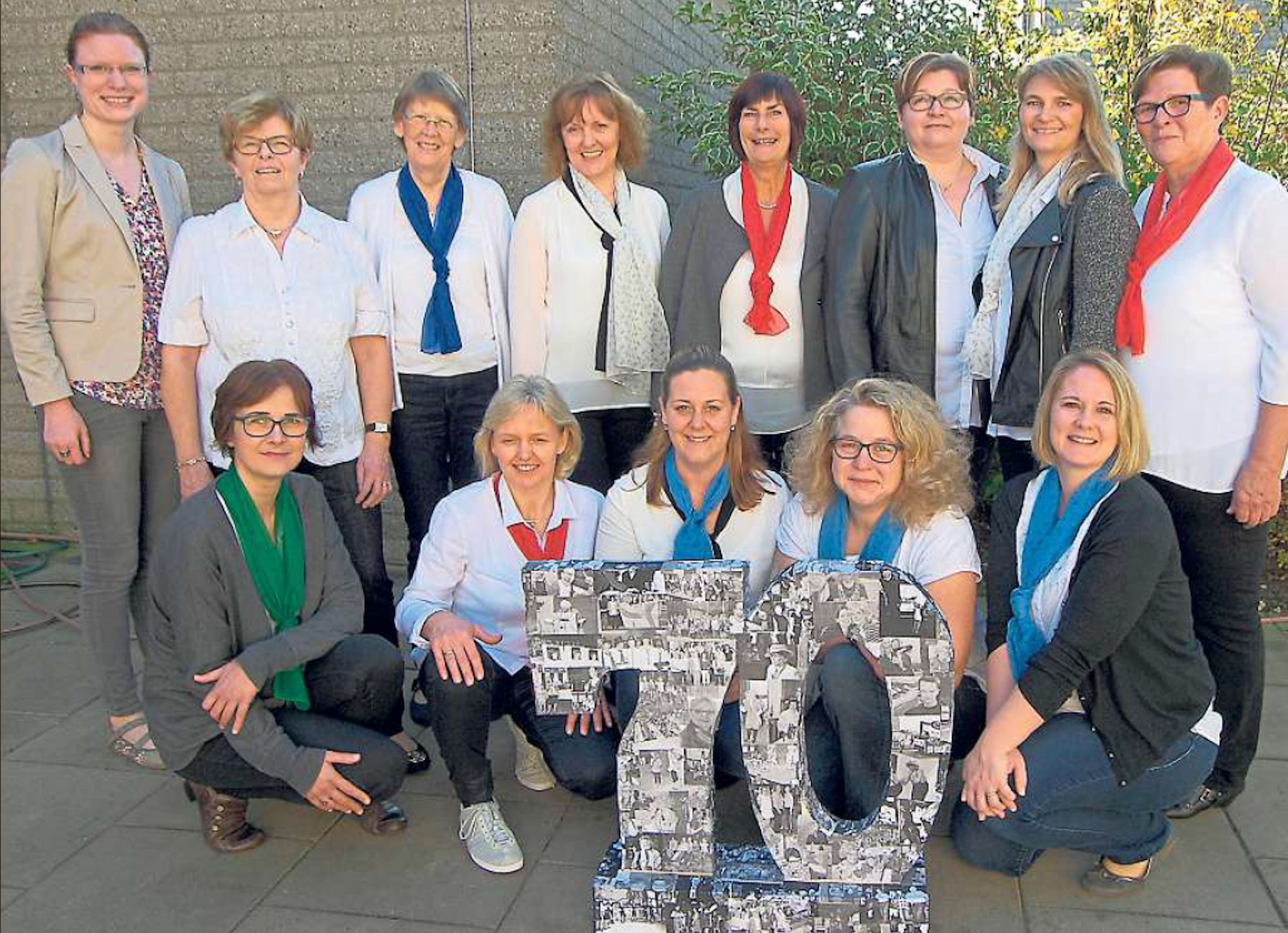 Mit einem Jubiläumsgottesdienst und anschließendem Sektempfang hat am Sonntagvormittag die Katholische Frauengemeinschaft (KFD) Bruder-Konrad ihr 70-jähriges Bestehen gefeiert. „Wir sind stolz auf diesen Festtag und freuen uns, dass Sie so zahlreich unserer Einladung gefolgt sind“, sagte Rita Kordwittenborg vom Vorstandsteam zur Begrüßung. „In der Gemeinschaft haben sich viele Frauen in all den Jahren mit ihren Begabungen und Talenten eingebracht“, stellte sie heraus. Zelebriert wurde die Messe von Vikar Markus Henke. Im Pfarrheim blickte die Vorstandssprecherin gemeinsam mit Gemeindereferentin Eva-Maria Dierkes, Eileen Schürmann und Anni Stüker noch einmal auf die Anfänge des „Müttervereins“ zurück. Eileen Schürmann erzählte, dass früher nur verheiratete Frauen hätten eintreten dürfen. Und dass die Beitrittserklärung vom Ehemann hätte unterschrieben werden müssen. „Glücklicherweise hat sich die Gesetzeslage verändert. Heute haben Frauen ganz andere Möglichkeiten, sich zu verwirklichen“, betonte Eileen Schürmann. Geschichtliche Daten über die Frauengemeinschaft hatte Teamsprecherin Rita Kordwittenborg parat. Sie berichtete, dass die KFD St. Bruder-Konrad im Oktober 1947 unter der Leitung der Vorsitzenden Paula Buschsieweke gegründet wurde und dass einige Frauen bereits Mitglieder in der KFD St. Pankratius gewesen seien. Außerdem erwähnte sie die Neuanschaffung einer KFD-Fahne anlässlich des Jubiläums.