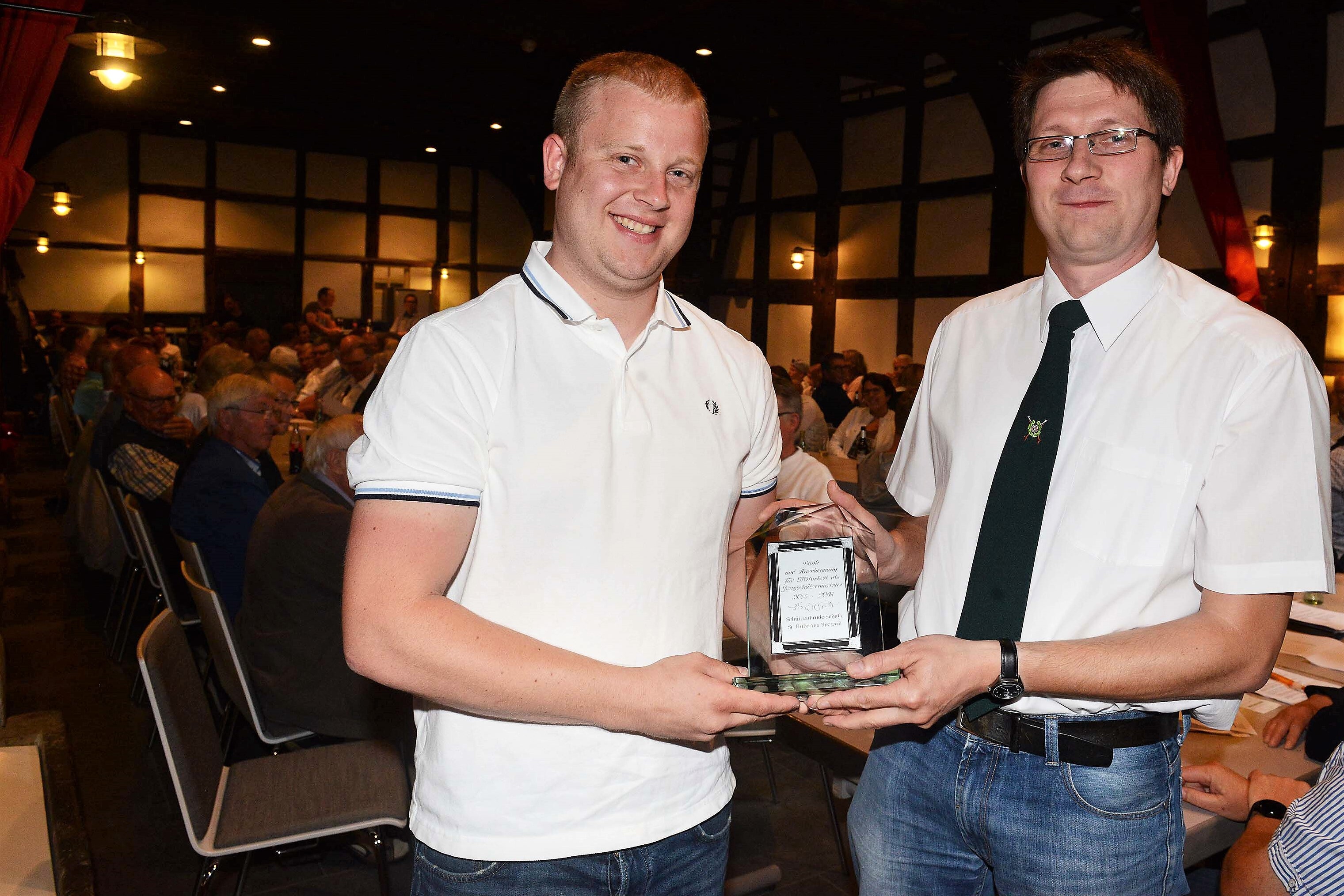 | Der Brudermeister Maik Hollenhorst (rechts) verabschiedete den im März ausgeschiedenen Jungschützenmeister Niklas Brüggemann. |