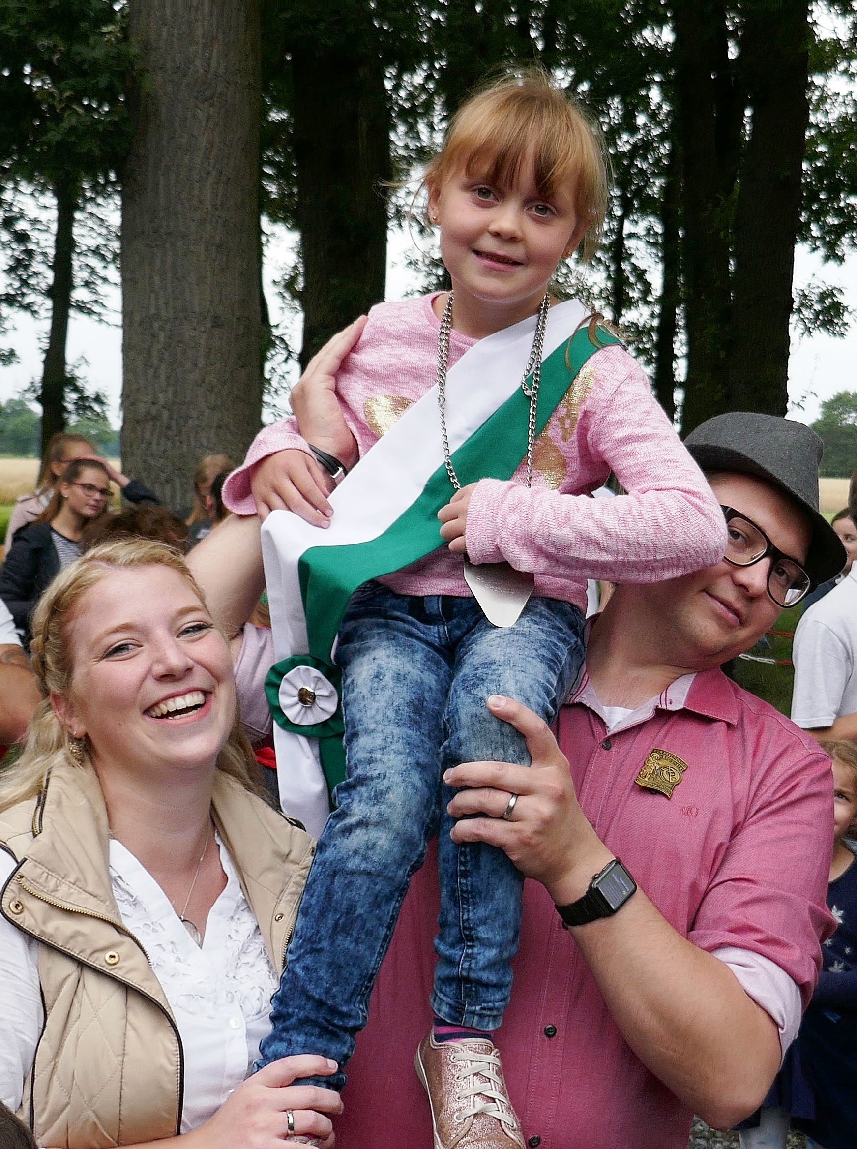 Die St. Hubertus-Schützenbruderschaft Spexard hat eine neue Kinderkönigin. Die sechsjährige Maja Stüker sicherte sich den Titel auf dem Meierhof Künnepeter. Rund zwei Dutzend Kinder wollten den begehrten Adler zu Fall bringen und rangen über 90 Minuten um die Königswürde. Geschultert wurde die neue Regentin von ihrem Onkel Rene, dem aktuellen Schützenkönig der Bruderschaft. Ihre Großeltern Werner und Anni Stüker hatten 2010 /2011 im Spexarder Land regiert. Die Schützen hatten zum Kinderschützenfest und Probeantreten geladen und das Werfen um die Kinderkönigswürde war einer der Höhepunkte.