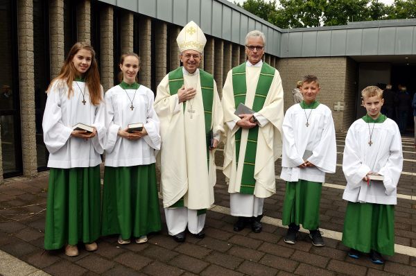 Der Spexarder Wilhelm Steckling (68) ist im November 2014 von Papst Franziskus zum Bischof in Paraguay ernannt worden. Nach der Weihe zum Erzbischof Diözese Ciudad del Este am 21. Dezember des vergangenen Jahres weilte der Sohn der Gemeinde jetzt wieder in seiner Heimatgemeinde St. Bruder-Konrad. Dort, wo er vor 41. Jahren zum Priester geweiht wurde, feierte er zusammen mit Pfarrer Elmar Quante die Sonntagsmesse. Am Montag reiste Steckling weiter nach Rom zum Heiligen Stuhl. Die Spexarder hatten ihrem Bischof einen herzlichen Empfang bereitet. Der Kirchplatz war mit Fahnen geschmückt und die Spexarder Vereine hatten ihre Fahnenabordnungen geschickt. Im Anschluss der Eucharistiefeier wartete ein Empfang im Pfarrheim. Das Kirchenvorstandsmitglied Johannes Hollenhorst hatte nach dem Hochamt zur Gemeinde gesprochen und ein „westfälisches Flachgeschenk“ in Form eines Geldumschlages für die Missionsarbeit überreicht. „Das ist ein wunderschöner Empfang und ich freue mich in der Heimat zu sein“, sprach Steckling zu den Gläubigen in der vollen Pfarrkirche. „Der Ort Spexard steht hinter den Missionaren.“