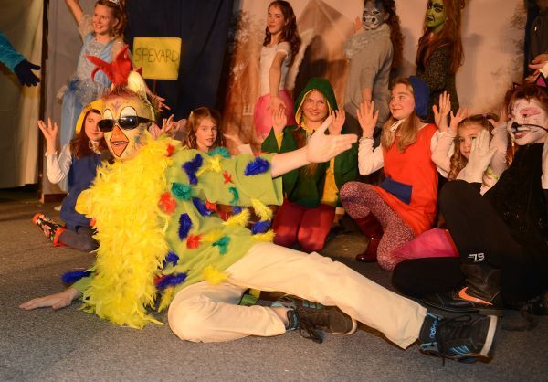 | Der Messdiener Phil Kahlert überzeugte als Stadtmusikant und durfte als Hahn sein musikalisches Talent zeigen. |
