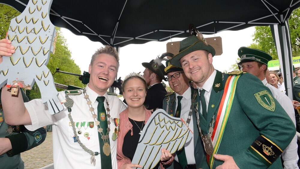 Die Saison der Schützenfeste in Gütersloh erlebte mit dem Bezirksschützenfest in Spexard einen gelungenen Auftakt. Die neuen Majestäten des Bezirksverbandes Wiedenbrück wurden an der Vogelstange ermittelt. Den hölzernen Adler erlegte Yannick Fischer von der Schützenbruderschaft St. Michael Liemke. Bei den Jungschützen hatte Til Dübeler von Hubertus Neuenkirchen das glückliche Händchen am Abzug. Zum zweitägigen Festreigen gehörten ein großer Festmarsch mit rund 1.000 Schützen und ein feierlicher Gottesdienst in der Bruder-Konrad-Kirche zu Spexard.