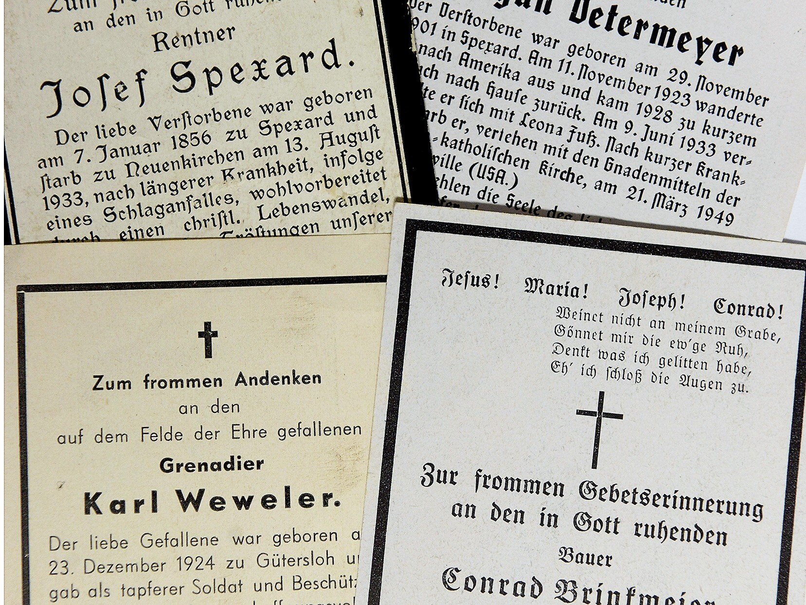 | Der Heimatverein Spexard ist auf der Suche nach historischen Totenzetteln aus Spexard. |