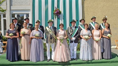 Die Freude war auch bei den Jubiläumsmajestäten noch zu spüren. Vor 25 Jahren hatten Norbert und Dietlind Brinkrolf regiert und vor 50 Jahren war Elisabeth Büscher die Königin an der Seite von Werner Frank. Mit einem Blumenstrauß bedankte sich der Vorstand für das Engagement. Für Norbert Brinkrolf spielte im Festzelt eigens der Musikzug Schloß Neuhaus der Freiwilligen Feuerwehr Paderborn auf.