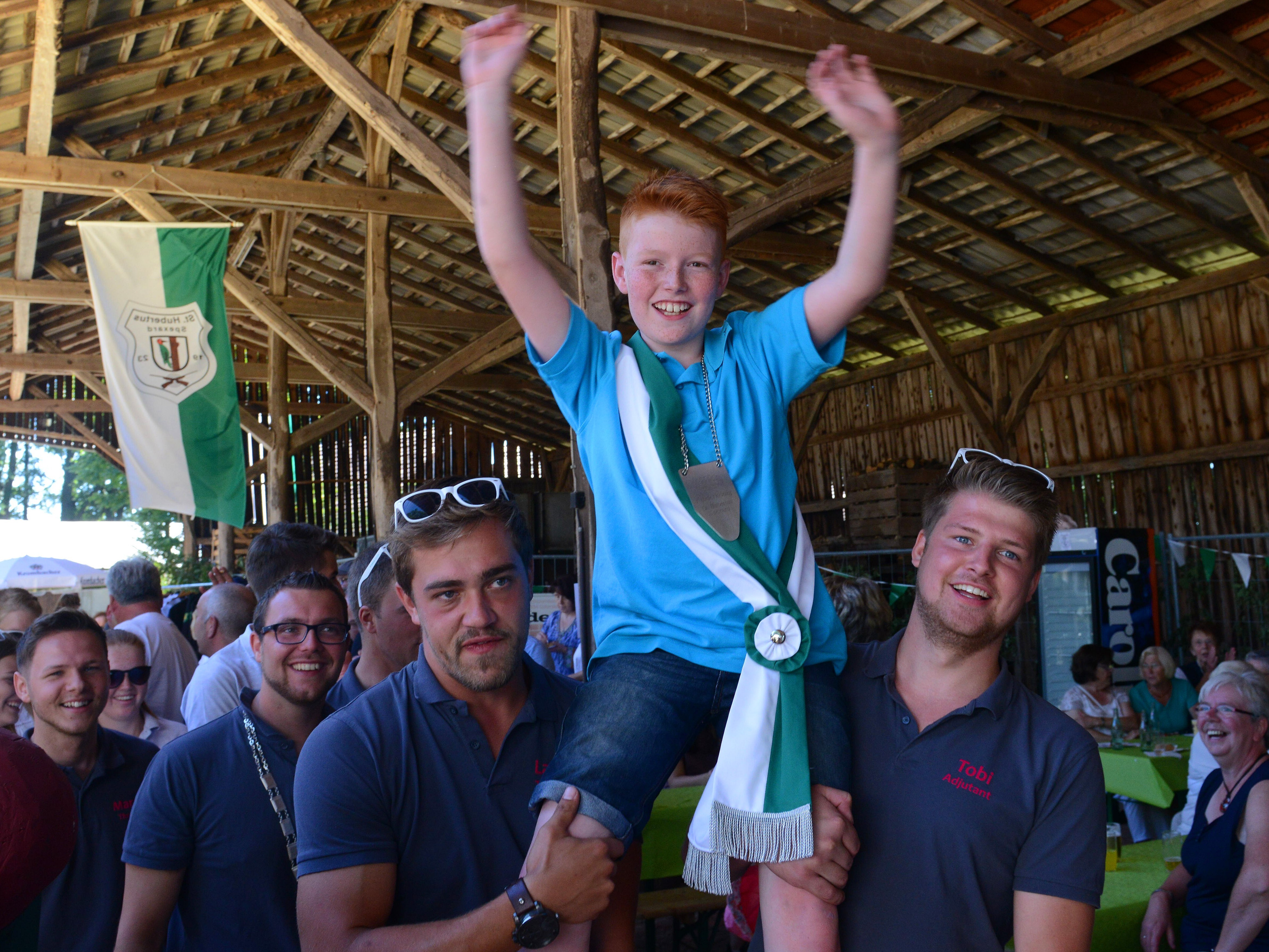 Die Schützenbruderschaft St. Hubertus Spexard hat zum ersten Mal in ihrer Geschichte einen Kinderkaiser. Den Titel sicherte sich am Sonntag beim Kinderschützenfest mit Probeantreten Felix Knies. Der Dreikäsehoch hatte 2014 zum ersten Mal den Wettbewerb auf dem Meierhof Spexard-Künnepeter zu seine seinen Gunsten entschieden. Mit dem 213. Wurf war der Vogel um 13.25 Uhr zu Boden gestürzt. „Das war ein spannender Wettstreit der in die Geschichte eingeht“, hatte Moderator Marco Schulte-Lindhorst gleich zwei Dutzend Bewerber an der Vogelstange ausgemacht. In Felix Knies fließt seit Generationen blaues Blut. Sein Großvater Helmut Knies war 1979 Schützenkönig von Spexard und seine Eltern Britta und Michael gehören der aktuellen Throngesellschaft um das Königspaar Peter und Elisabeth Barkusky an.