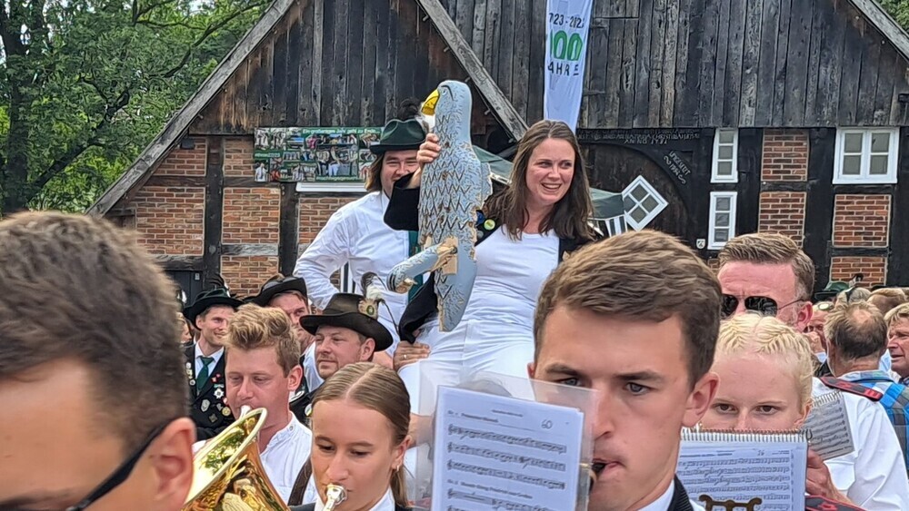 Die Vorsitzende des Heimatvereins Spexard Theresa Westerbarkey ist seit Samstagabend neue Schützenkönigin der St. Hubertus Schützenbruderschaft in Spexard. In einem Wettstreit mit Ihrem Mann Malte und zwei weiteren Schützen hatte sie das Glück in der Tasche. Denn beim vorletzten Schuss auf den hölzernen Adler fiel dessen Rumpf schon zu Boden. So hatte Feldhans nur noch den Rest vom Schweif des Vogels zu treffen. Ihren Mann Malte wählte Sie sodann zum Prinzgemahl.