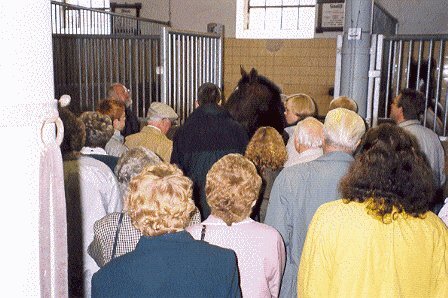 Die fünfzig-köpfige Gruppe besuchte zuerst das Nordrhein-Westfälische Landgestüt, welches bereits 1826 auf Wunsch der Züchter Westfalens und der Rheinprovinz durch die damalige Preußische Gestütsverwaltung gegründet wurde. So erhielten die Spexarder Einblick und Zutritt zu den Stallungen, in denen zu Höchstzeiten über 400 Hengste zur Zucht bereitstanden. Der ehemalige Rittmeister Fritz Lange, der selber fünfzig Jahre auf dem Landgestüt tätig war, wußte natürlich Interessantes zu berichten.