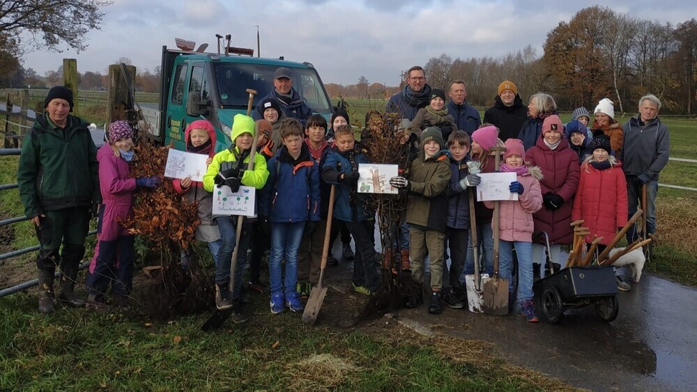 Alle guten Dinge sind drei, doch in diesem Fall sollte es nicht dabeibleiben: Die Viertklässler der Josefschule in Spexard haben jetzt zum dritten Mal etwas für das Klima getan und auf der Reitanlage Frenz Bäume gepflanzt.