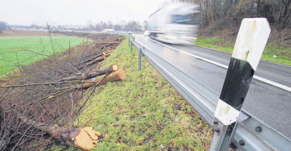| Gerodet: Viele Dutzend Bäume sind entlang Autobahn-Abfahrt gefällt worden. Schon bald beginnen hier die Arbeiten für eine Lärmschutzwand. |