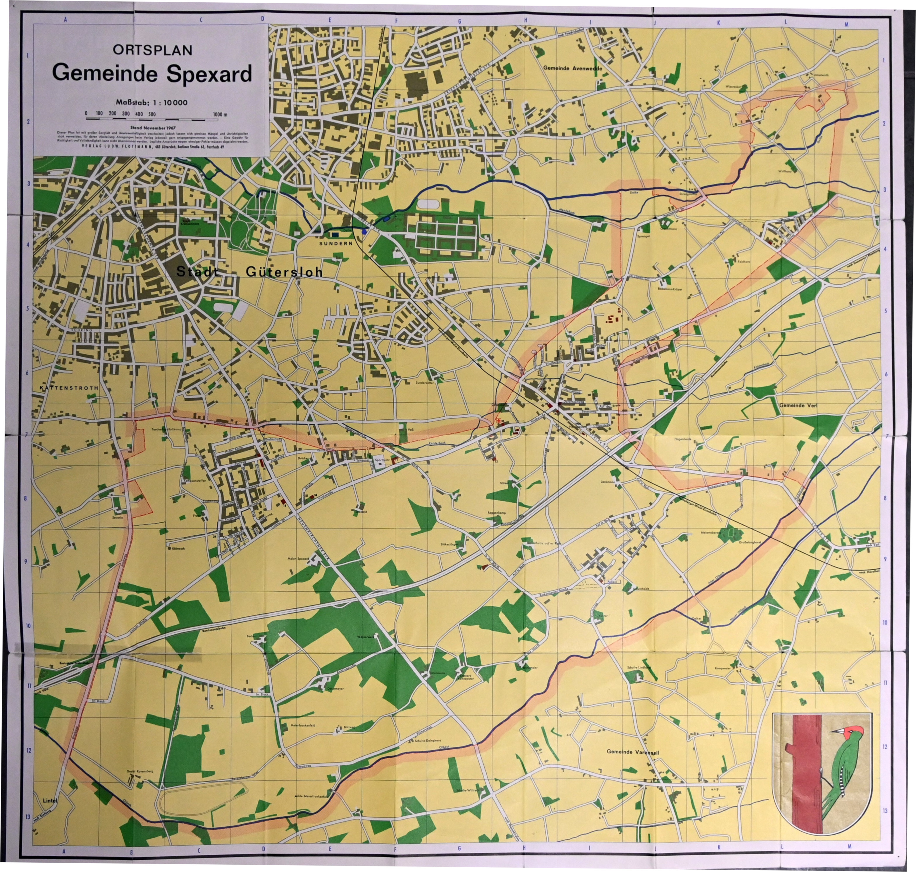 | Die Spexarder Gemeindekarte wurde vom Flöttmann-Verlag, Gütersloh, im Jahr 1967 veröffentlicht. |