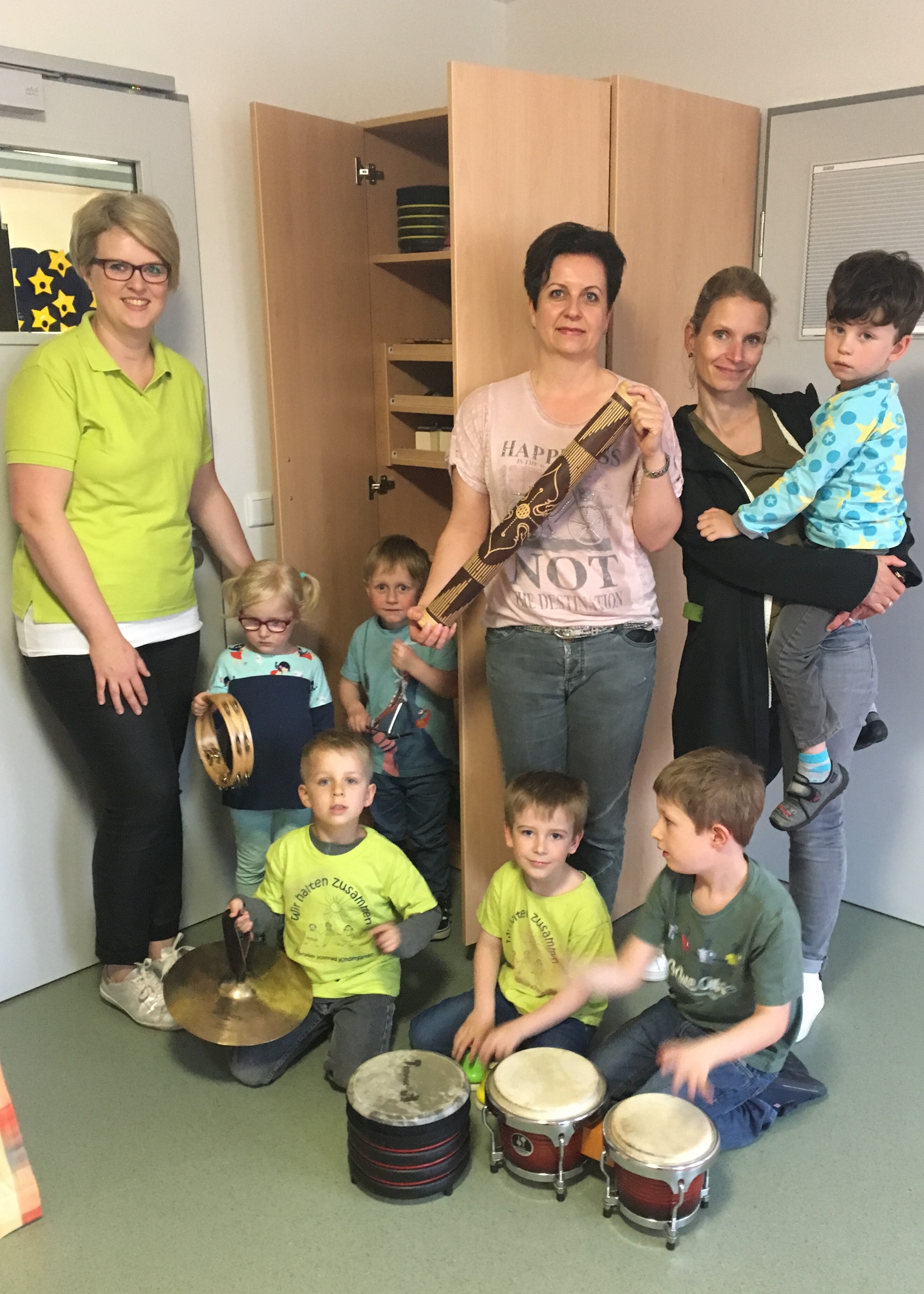 „Im Alltag der Kindertagesstätte spielt Musik eine große Rolle - besonders, seitdem die musikbegeisterte und Gitarre spielende Kollegin Elke Vogelsang dabei ist“, sagt Leiterin Barbara Pröger. Der Musikschrank ist mit Xylophonen, Triangeln sowie jeder Menge Trommeln und Rasseln ausgestattet, so dass die Kinder der vier Gruppen beispielsweise im Spielkreis gemeinsam musizieren können. Dabei verbindet die Musik auch Generationen. Regelmäßig besuchen Jungen und Mädchen die Senioren der Daheim-Hausgemeinschaft Stükerkamp oder laden sie in die Kita-Turnhalle ein, um gemeinsam zu singen. Auch in diesen Treffen ist jetzt noch mehr Musik drin. Barbara Prögers Ziel ist es, dass demnächst jede Gruppe eine eigene Musikkiste bekommt, damit Kastagnetten und Co. immer griffbereit sind.
