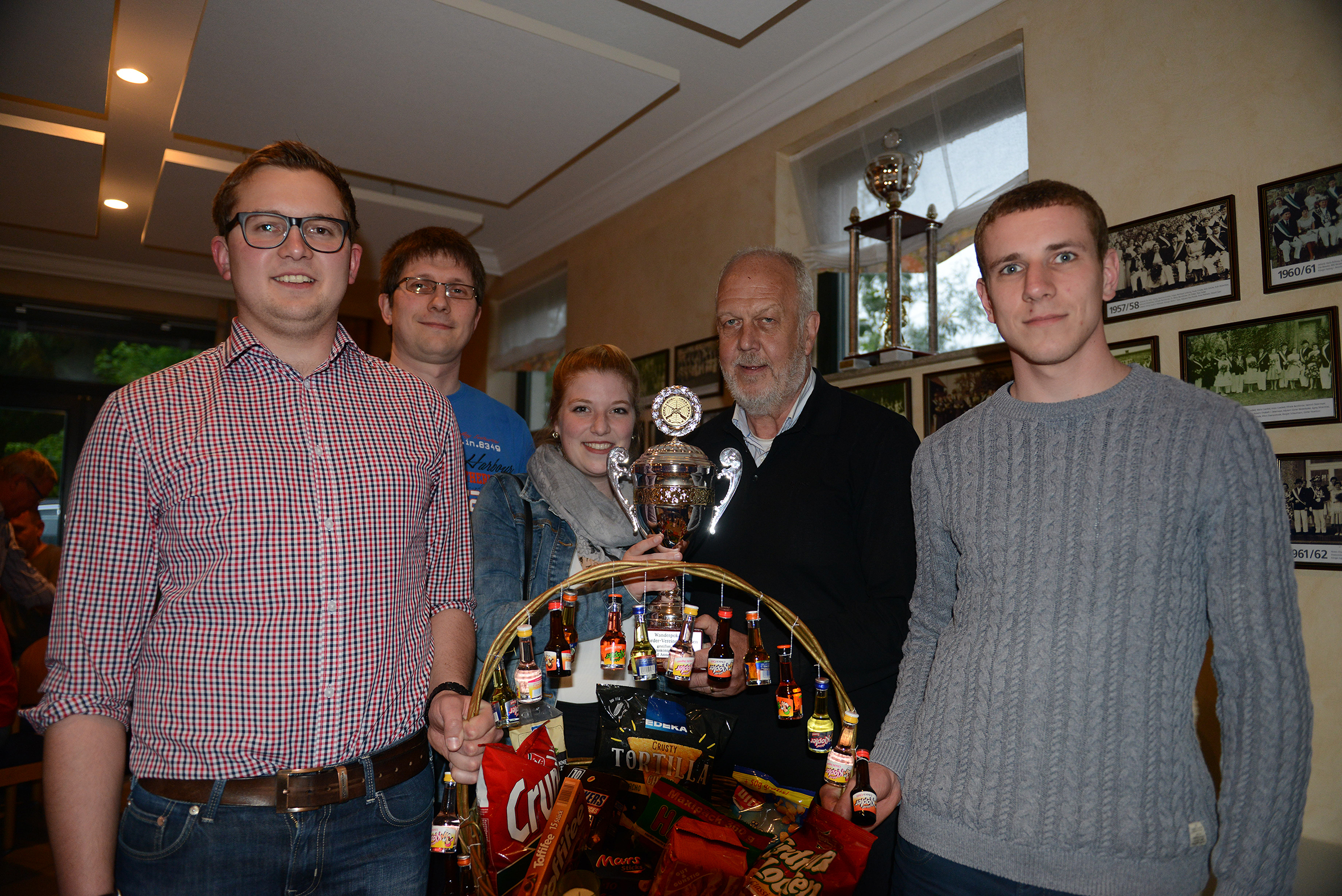 | Bei der Siegerehrung beglückwünschte Sponsor Alfons Hollenhorst (zweiter von rechts) die Sieger Rene Stüker (von links), Maik Hollenhorst, Simone Purkhart und Jannik Schröder. |