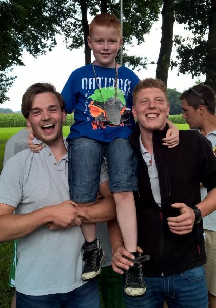 Der neue Kinderkönig Felix Knies wird von Nick Melzer (links) und Jan-Hendrik Meiertoberens geschultert.