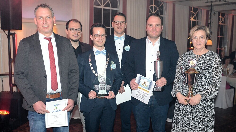 | Ausgezeichnet wurden die erfolgreichen Schützen Mario Kötter (von links), Sebastian Kebekus, Lennard Stüker, Jona Johannhörster, Markus Hecker und Susanne Mitschke. |