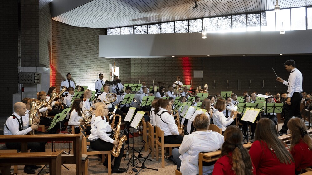 | Der Musikzug Spexard spielte in der gut besuchten Bruder-Konrad-Kirche zu einem Frühlingskonzert auf. |