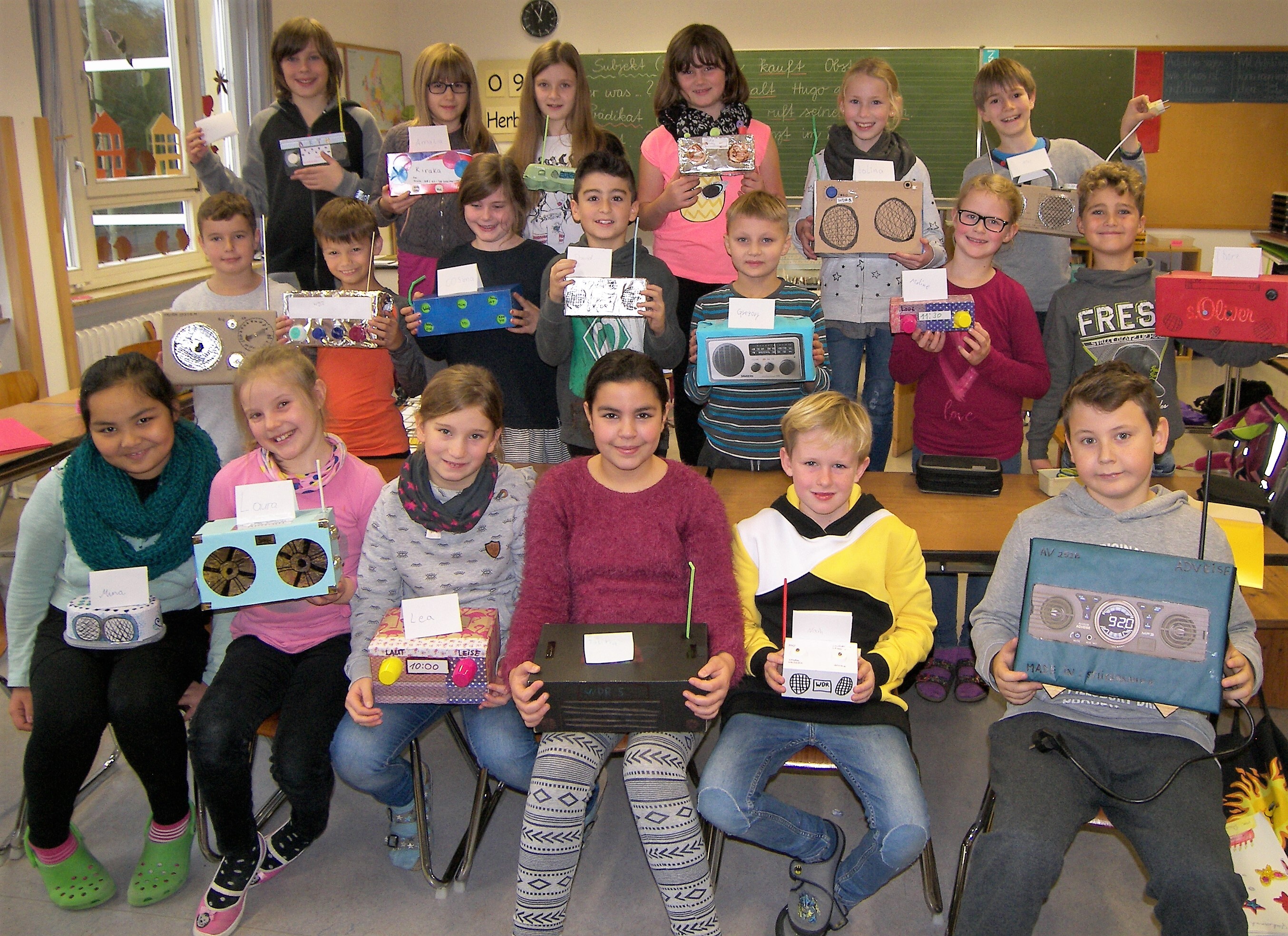 | Jedes Kind hat sich ein eigens Radio gebastelt. Das Radioprojekt „Kiraka kommt“ hat den Viertklässlern der Josefschule richtig Spaß gemacht. |