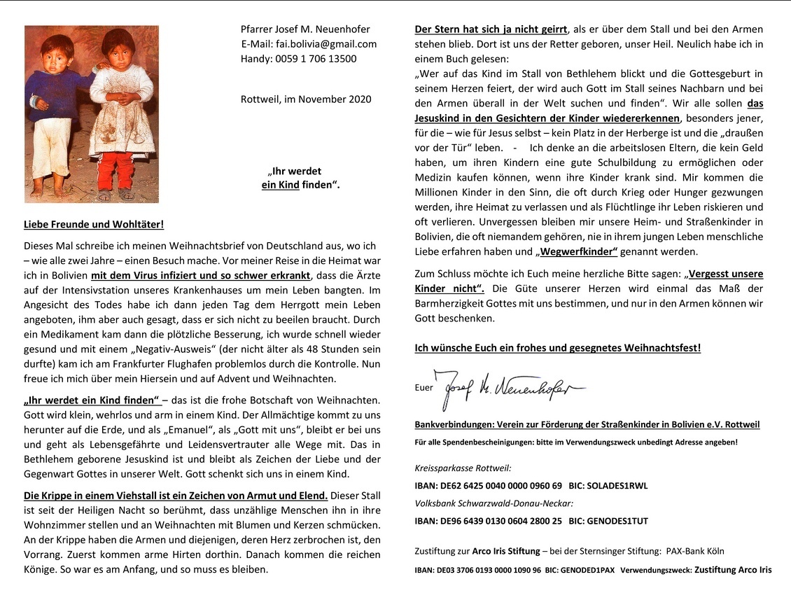 nach überstandener Corona Infektion, ist Pfarrer Neuenhofer, der Gründer der Stiftung ARCO IRIS, derzeit wieder zu Besuch in Deutschland.