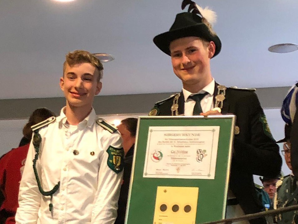 Der Sportschütze Cai Nolding sicherte sich am Samstag in Westönnen im Kreis Soest den Titel des Jugendprinzen des Diözesanverbandes Paderborn. Der 17-Jährige setzt die eindrucksvolle Siegesserie der Nachwuchsschützen von St. Hubertus Spexard fort. Den im vergangenen Jahr sicherte sich seine Vereinskameradin Olivia Kötter diese hohe Auszeichnung. Die erfolgreiche Verteidigung des Titels war mit 26 Ringen im Freihandschießen perfekt. Nur eine Woche nach dem Gewinn auf Bezirksebene in Mastholte schnappte sich Cai Nolding den nächsten Titel. Bei den sportlichen Wettkämpfen des Bezirksverbandes Wiedenbrück lag Cai Nolding mit 24 Ringen vorne. Der Spexarder löst wie vor einer Woche in Mastholte Olivia Kötter ab. Damit bleiben die Standarte des Bezirksverbandes Wiedenbrück und die des Diözesanverbandes Paderborn für ein weiteres Jahr in Spexard.