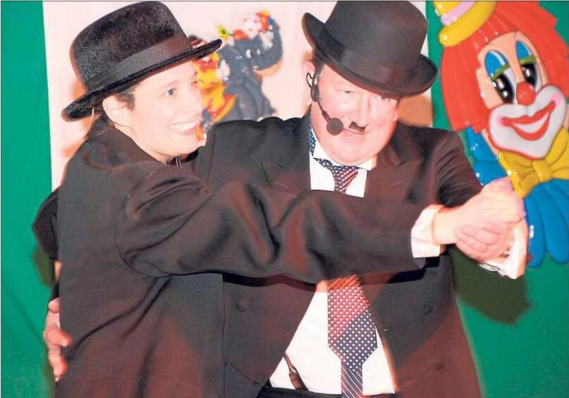 | Ein Tänzchen zu dem Lied „Despacito“ wagten Kerstin Westhoff (links) und Vikar Markus Henke. Sie waren als „Dick und Doof“ verkleidet. |