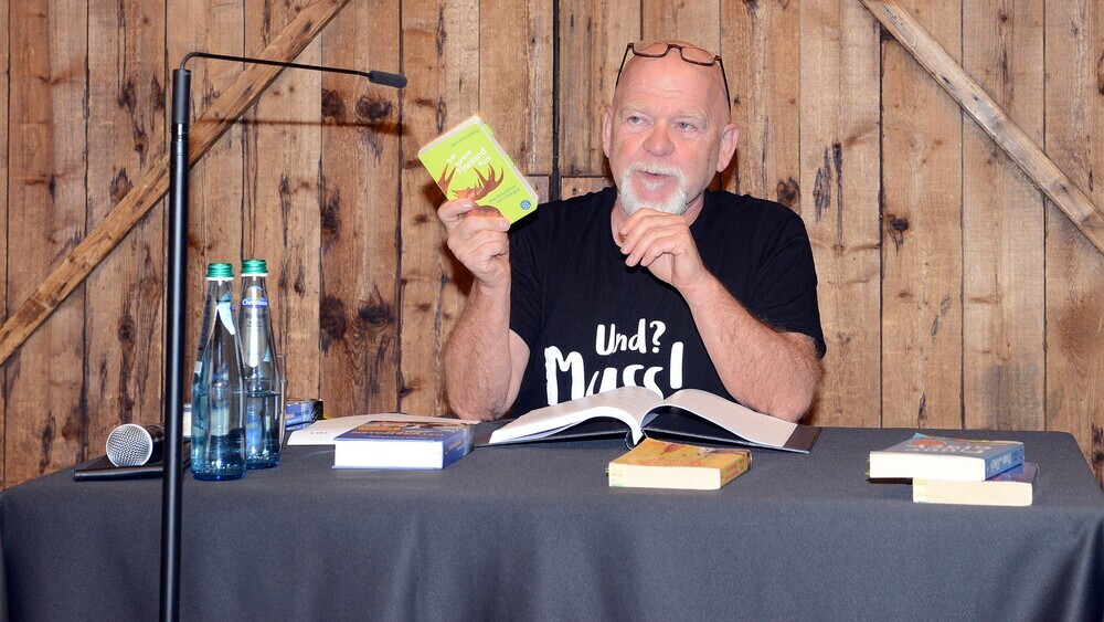 Der Kabarettist und Spiegel-Bestsellerautor Bernd Gieseking fühlte sich im Spexarder Bauernhaus zum literarischen Abend des örtlichen Heimatvereins pudelwohl. „Als gelernter Zimmermann geht in diesem Fachwerkhaus mein Herz auf“, sagte der geborene Mindener, der zwei Stunden überwiegend aus seinem Bestseller „Das kuriose Ostwestfalen Buch“ zum Besten gab aber auch über seine Finnlandreisen und die Finnen bemerkenswertes auf Lager hatte. In Kutenhausen, einem ländlichen Stadtteil von Minden, ist Gieseking aufgewachsen und nach mehr als 30 Jahren ist der plattdeutsch sprechende Künstler in seine Heimat zurückgekehrt. Seine Eltern sind typische Bewohner der Region und bei seinen Ausführungen über den Menschenschlag lässt ihr sie oft in seinen Erzählungen vorkommen. Die knapp 100 Besucher fanden ihre Eltern und Großeltern in Erzählungen über Giesekings Eltern wieder. Der Vater war auch Zimmermann und die Mutter Milchmädchen ohne Ausbildung. Über seinen ersten Beruf ist er zum Schreiben gekommen. Bei einem Richtfest einer Sparkasse in Bad Oeynhausen sprach er den Richtspruch. „Danach wusste sich, dass Sprache mein Beruf ist“, erzählt Gieseking. Der längst aufgelöste Lesering von Bertelsmann half dem Satiriker dabei. „Alle drei Monate kam ein neues Buch ins Haus und die Karl May-Bücher von meinem Bruder hatte ich da schon verschlungen.“