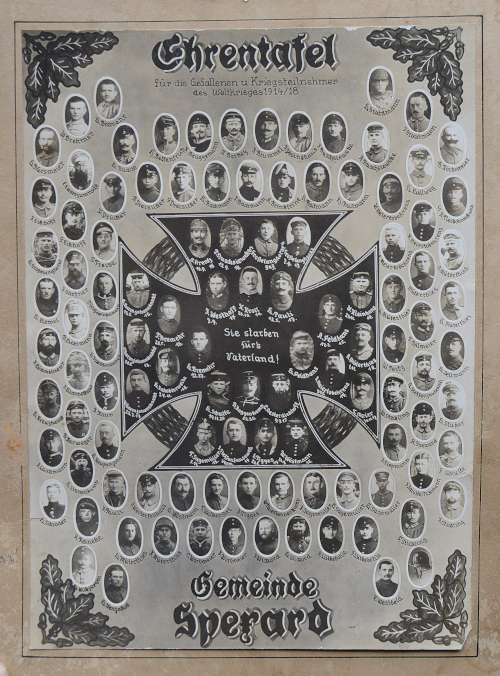 | Diese Ehrentafel zeigt die Spexarder Gefallenen von 1914 - 1918. Klicken Sie hier, um Erläuterungen zur Ehrentafel herunterzuladen. |