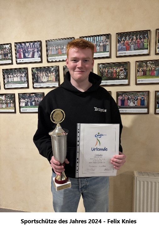 Sportschütze des Jahres 2024 wurde Felix Knies, der für seine sportlichen Erfolge der Saison 2023/24 ausgezeichnet wurde: