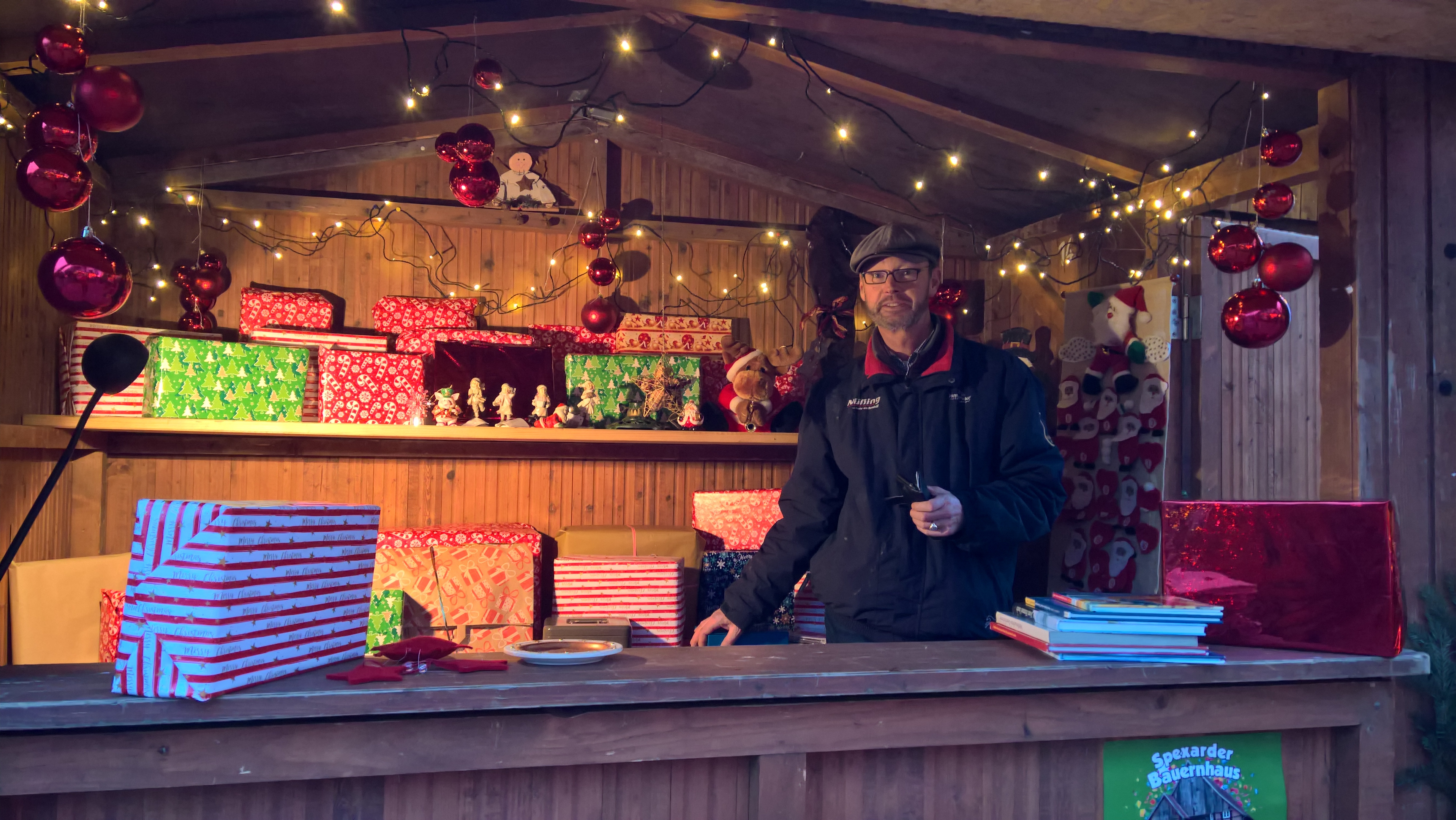 Die hat auch Wilfried Becker bei der Ausübung seines drehenden Hobbys. Bereits seit Jahren baut der Isselhorster eines seiner fünf Kinderkarussells auf dem Spexarder Weihnachtsmarkt auf. Diesmal ist er mit einem neuen alten Karussell dabei, das er in Brandenburg entdeckt hat. Ein Liebhaberstück aus dem Jahr 1936. „Im Baubuch ist noch der Stempel mit dem Hakenkreuz zu sehen“, musste Becker beim Erwerb der Rarität das Nazi-Symbol mit in Kauf nehmen. Einige Figuren sind noch original, angetrieben wird der Oldie nicht mehr wie früher mit Salzwasser: Ein Elektromotor bringt ihn in Schwung. Auch im digitalen Zeitalter kann sich der Betreiber über fehlende Kundschaft nicht beklagen. Becker: „Kinder lieben das Karussellfahren – nicht zuletzt deshalb, weil es dabei so schön blinkt.“ Es passiert schon mal, dass ein junger Kunde während der Fahrt im nostalgischen Drehmobil ein Smartphone aus seiner Tasche zieht. Auch ist schon vorgekommen, dass Wilfried Becker ein Kind wecken musste – es war beim Rundendrehen eingenickt. Der Karussell-Inhaber kommt immer gern nach Spexard: „Weil die Leute hier extrem nett sind!“ Damit meint er auch den Veranstalter, den Jugendförderverein. Fünf der 17 Hütten wurden in Eigenregie hergestellt. „In den nächsten Jahren sollen noch mehr eigene Hütten dazukommen. Das ist günstiger als mieten“, erklärt der für den Bühnenablauf zuständige Christian Jansen. Der alljährliche Erlös kommt Spexarder Kirchen, Schulen und Jugendabteilungen zugute. In 18 Jahren ist ein beachtliches Sümmchen zusammengekommen: mehr als 70.000 Euro. Und der eingangs angebotene Ostpreußen-Schnaps? Probiert – der schmeckt wirklich lecker! (Westfalenblatt vom 10.12.2019)