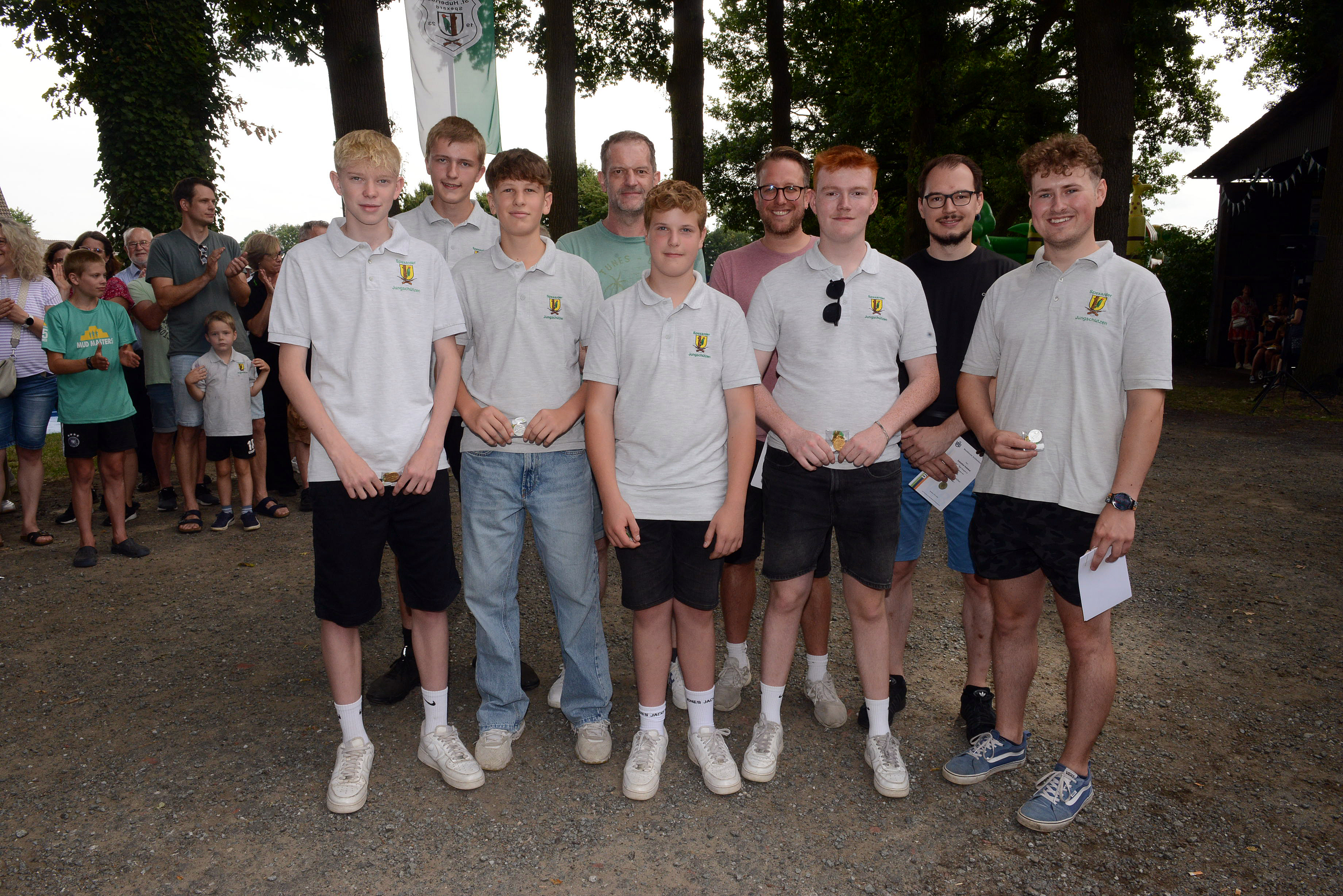 Die Gewinner des Ordenschießen wurden vom Vorstand der Sportschützen ausgezeichnet. Bei den aktiven Schützen unter 25 sicherte sich Felix Knies den ersten Platz mit 196 Ringen. Das Ergebnis von 193 Ringen erzielten Cai Nolding und Moritz Hollenhorst. Weil der ehemalige Diözesanprinz Nolding die bessere Zehntelwertung erzielte, sicherte er sich „Silber“ von Moritz Hollenhorst. Noch spannender ging es bei den aktiven Schützen über 25 zu. Die drei Erstplatzierten errangen alle 200 Ringe. Es musste die Zehntelwertung entschieden. Das bessere Ende für sich hatte Volker Drücker mit 212,7 Zählern vor Thomas Mitschke und Adrian Przegendza. Bei den passiven Schützen unter 25 war Leon Grell mit 190 Ringen der beste Schütze. Auf den Plätzen zwei und drei landeten Toni Hensdiek (182) und Matthis Hemken (157). Bei den passiven Schützen trumpften zwei Tischtennisspieler des Sportverein Spexard auf, die schon beim jüngsten Vereineschießen erfolgreich waren. Über den ersten Rang freute sich Sebastian Kebekus mit 196 Ringen und Dritter wurde Tischtennis-Abteilungsleiter Guido Hollenhorst (194 Ringen / 201,3). Über „Silber“ freute sich Till Wichelmann (194 / 201,3).