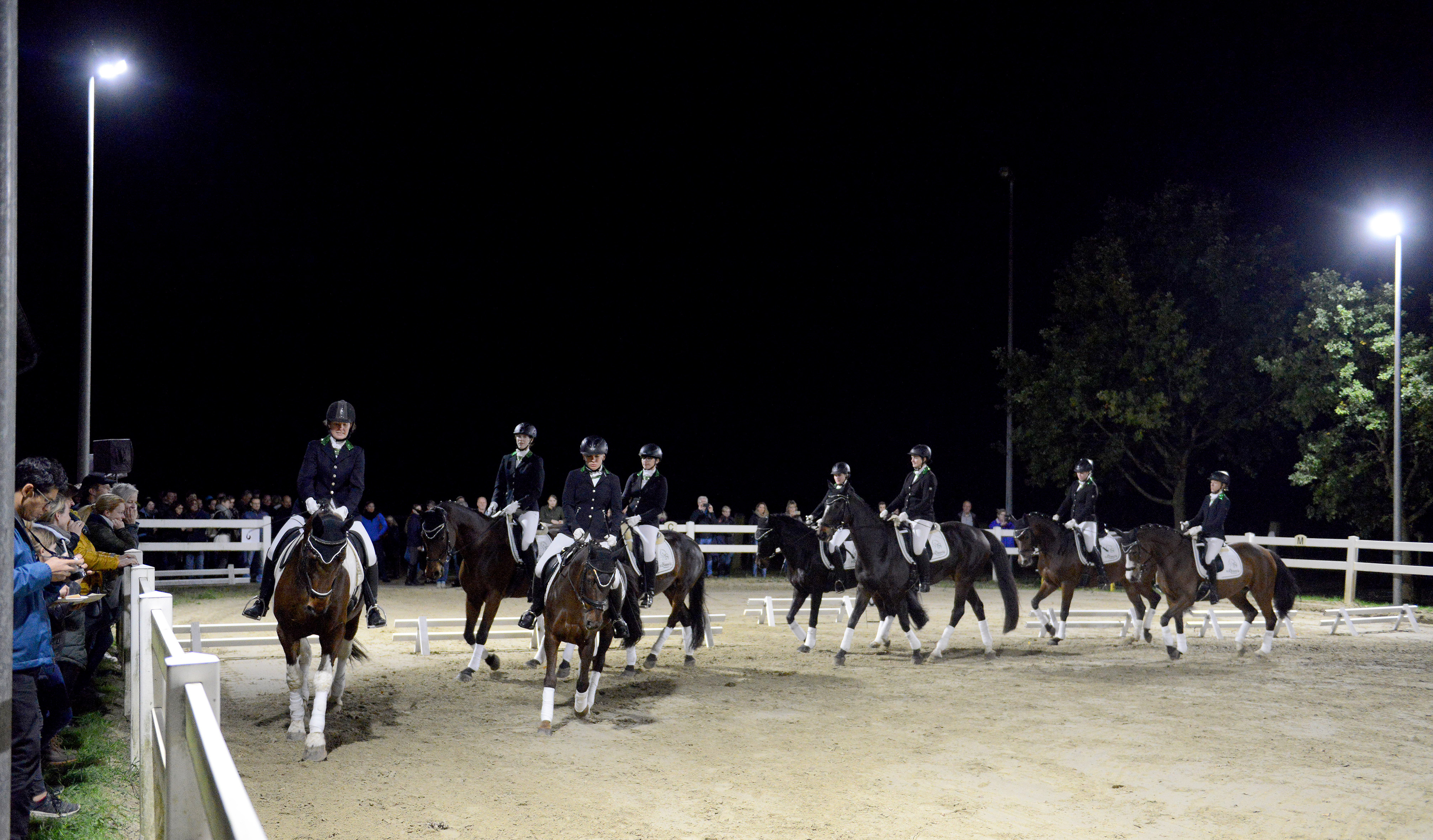 | Der sportliche Höhepunkt auf dem jetzt mit einer LED-Lichtanlage ausgestatteten Reitplatz war der Auftritt der Kreisquadrille |
