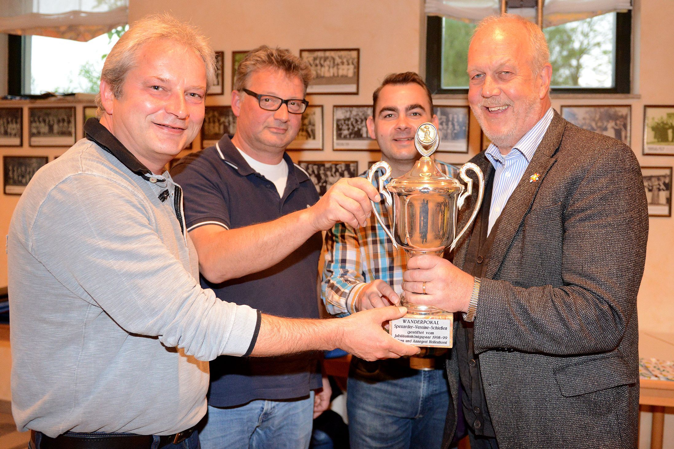 Das Siegerteam vom Thron Steinkemper freute sich über den von Alfons Hollenhorst (r.) gestifteten Pokal. Es siegten Andreas Großegesse (v.l.), Ulrich Steinkemper und Patric Puls.