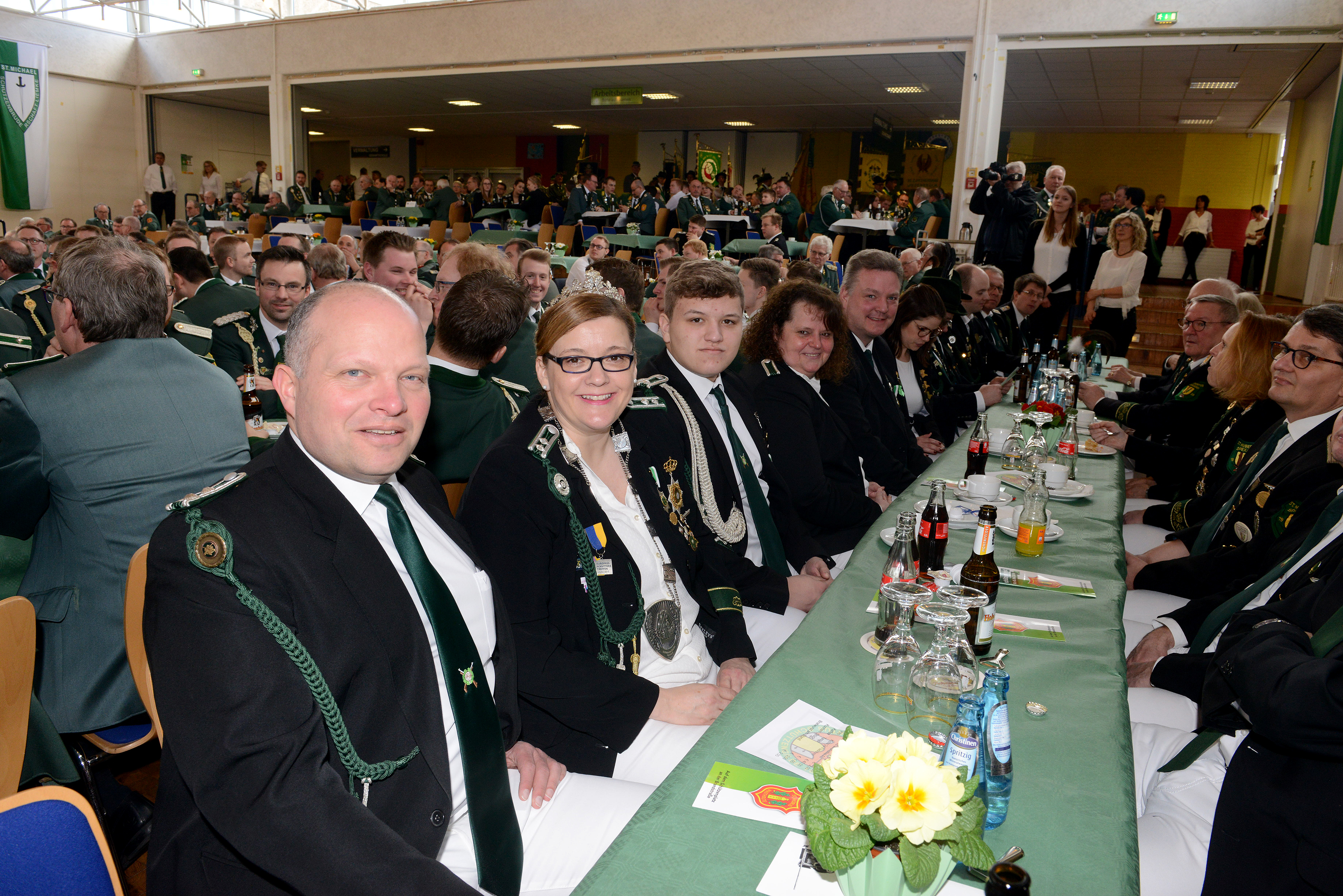 „Wir lassen uns nicht reglementieren wenn es um die Ausrichtung unserer Schützenfeste geht“, appellierte Bezirksbundesmeister Mario Kleinemeier an die anwesenden politischen Vertreter sich den Problemen anzunehmen. Die Schützenfeste stehen wegen einzelner Lärmbeschwerden unter Beschuss. Kleinemeier zitierte den verstorbenen CSU-Politiker Franz-Josef Strauß. „Geräusche die von Schützenfesten kommen sind Lebensfreude und kein Lärm.“ Der Rietberger Bürgermeister Andreas Sunder stellte deutlich klar, dass er keine Lärmdebatte will. „Wir stehen zum Schützenwesen, weil es prägend für unsere Region ist und ein großer Identitätsfaktor. Daran werden wir nicht rütteln und die Feste nicht wegen einzelner Interessengruppen zum Opfer fallen lassen.“ Den Festvortrag hielt Dr. Jan Heinisch (42), Staatssekretär im Ministerium für Heimat, Bau und Gleichstellung des Landes Nordrhein-Westfalen. Der Rheinländer ist seit 1989 in der Freiwilligen Feuerwehr Heiligenhaus und trägt die „Blaue Uniform“. Von Rietbergs Brudermeister Stefan Kay bekam er vor dem Bruderschaftstag eine Schützenkrawatte mit dem Wappen der Rietberger Schützengilde geschenkt. Der Verwaltungsbeamte erinnerte an den 70. Geburtstag des Grundgesetzes der Bundesrepublik. „Das Gesetzt ist ein Stück Qualität in unserem Leben und ein Zeichen von Heimat. Es stärkt uns und wir müssen keine Heimat verlieren, wie es Generationen vor uns mussten. Heimat ist Sicherheit und muss von der Politik bearbeitet werden“, bekräftigte Heinisch. „Für junge Menschen kann Heimat ein wichtiger Gegenpol zur digitalen Welt sein.“ Den Schützen gab Heinisch mit auf dem Weg ihr Brauchtum weiter zu pflegen, weil das“ Schützenwesen ein starkes Stück Heimat ist“. In Sachen Lärm setzte sich der Staatssekretär und ehemalige Bürgermeisterst von Heiligenhaus (26.000 Einwohner) für die Schützenbewegung ein. „Wir müssen uns um Lärm kümmern. Es ist auf dem Weg zum richtigen Ministerium“, versprach Dr. Jan Heinisch.