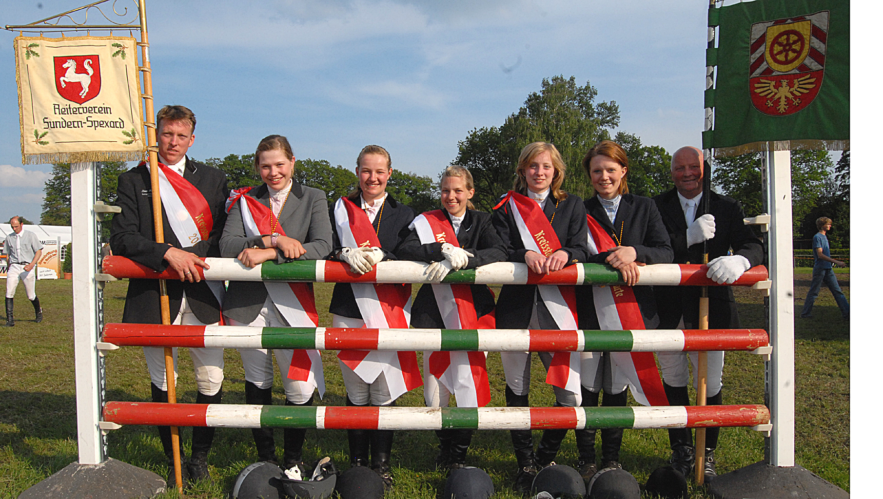 Die Mannschaft des Reitervereins Sundern-Spexard hat zum dritten Mal in der 57-jaehrigen Vereinsgeschichte die Standarte des Kreisreiterverbandes Guetersloh gewonnen. Die fleissigen Uebungsstunden haben sich gelohnt, freute sich Teamchef Hermann Johannhoerster ueber die tolle Leistung seiner noch jungen Equipe.