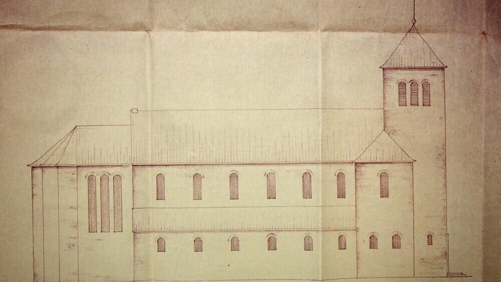| Die Pläne der nicht gebauten Kirche aus dem Pfarrarchiv der Kirchengemeinde St. Pankratius. |