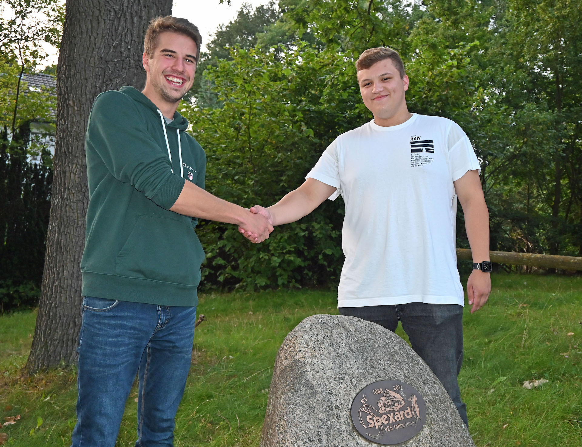 Der scheidende Jungschützenmeister Mattis Spexard (links) und sein Nachfolger Moritz Toppmöller.