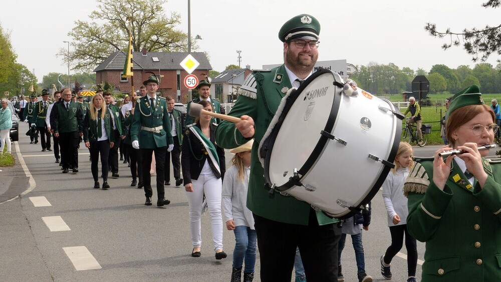 | Führten den FeIn Spexard marschierten die Schützen hinter der zackigen Marschmusik. An der großen Trommel Mischa Großevollmer vom Spielmannszug aus Mastholte. |