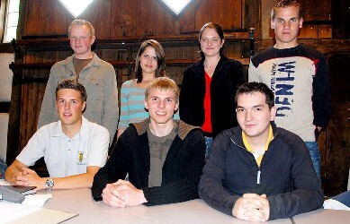 Sebastian Stöhr, Delia Spexard, Anne Grund, Timo Schröder (hinten von links), Sebastian Stiens, Jan Hollenhorst und Jörn Grote (vorne von links) führen die Jungschützenabteilung in Spexard.