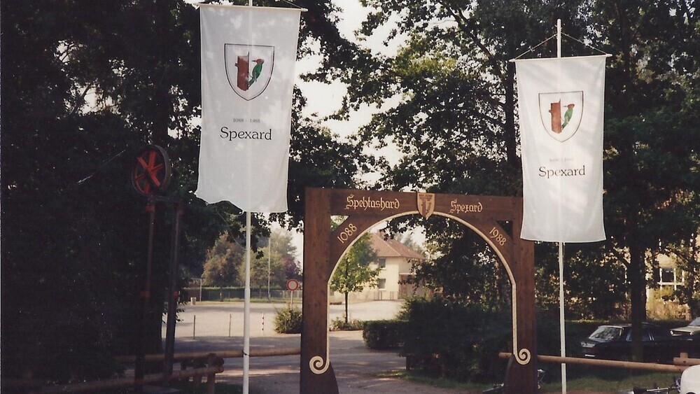 Der Höhepunkt des Jubiläumsjahres war das Volksfest auf dem Festplatz an der Bruder-Konrad-Straße. An allen vier Tagen war das Wetter gut, und so konnten die Veranstaltungen bei optimalen Bedingungen durchgeführt werden. Ein großer Torbogen mit Inschrift zum Jubiläum war eigens am Aufgang zum Festplatz aufgestellt worden. Das Volksfest begann am Freitag, 9. September, mit einer Jugend-Live-Fete im Festzelt. Es spielte die Band „Starlights“ aus Rheda-Wiedenbrück. Der Samstag, 10. September, begann um 14 Uhr mit einem Kinderfest auf dem Festgelände mit vielen interessanten Spielen. Um 15 Uhr startete das Dreschfest der Landwirte. Sie hatten dafür im Juli auf einem Feld des Hofes Determeyer Roggen nach alter Väter Sitte geerntet und per Hand zu Garben gebunden. Das Fuder wurde nun an die alte Dreschmaschine wie anno dazumal gefahren und auf dem Festplatz gedroschen. Den Kommentar zu dieser Tätigkeit und viele Erklärungen gab Heinrich Feldhans. Ein Teil des Festplatzes war in eine alte Spexarder Heidelandschaft mit Holzhürden für Schafe und Geflügel in der Voliere umgestaltet worden, um zu dokumentieren, wie es vor 900 Jahren in Spexard aussah. Auf dem Festgelände wurde Handwerk aus alter Zeit vorgeführt. Im Festzelt konnten Schnitzer, Spinner, Schuster und Holzschuhmacher bei der Arbeit beobachtet werden, und auf dem Festplatz arbeitete ein Seiler an seinem Gerät. Weiter zogen eine Feldschmiede mit Hufschmied und alte landwirtschaftliche Tätigkeiten die vielen Besucher in ihren Bann. Die Tanzgruppe der Landfrauen trat auf, und die Landfrauen boten Gerichte wie zu Großmutters Zeiten an. Zum Gewichtschätzen wurde eine Milchkuh angebunden. Ab 20 Uhr spielten die „River Boys“ zum Festabend auf. Eine mit der Eintrittskarte verbundene Verlosung ergab als Hauptgewinn eine Fahrt mit dem Heißluftballon.