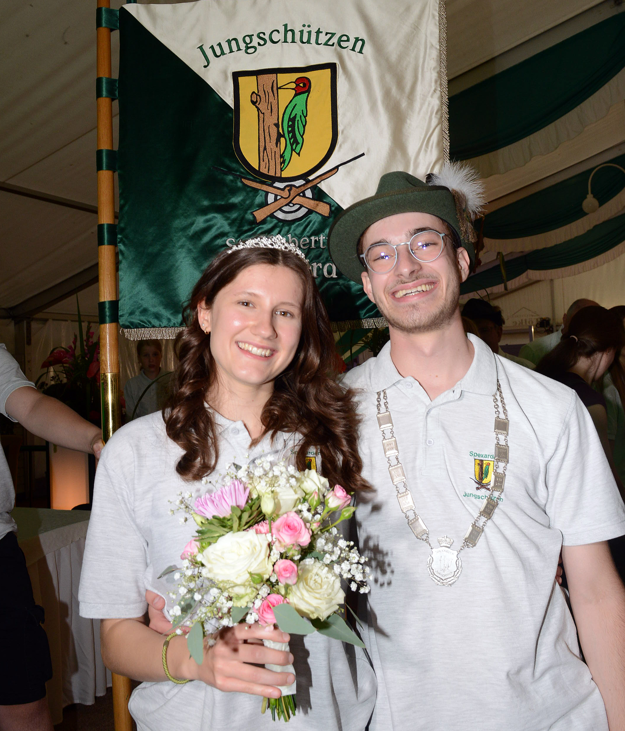 Die Jungschützen der Schützenbruderschaft St. Hubertus Spexard werden in den kommenden zwölf Monaten von Phil Kahlert regiert. Der 20-Jährige sicherte sich am Freitagabend die Königswürde. Zu seiner Königin wählte er sich Lea Wullenkord. Die 17-Jährige, die just ihr Abitur am Städtischen Gymnasium gebaut hat, hatte das Vogelschießen mit ihrem Großvater Johannes Hollenhorst noch kommentiert und tauschte das Mikrofon schnell mit der Krone der Königin. Die Insignien hatten sich Tim Eickhoff (Krone), Arvid Woch (Apfel) und Mattis Willmann (Zepter) erstritten. Zum Thron gehören Adjutant Christoph Johannhörster, Ylvi Stenzel und Cai Nolding, Antonia Kreft und Gerrit Grell, Lotta Hensdiek und Connor Stenzel sowie Laura Runte und Thomas Grön.