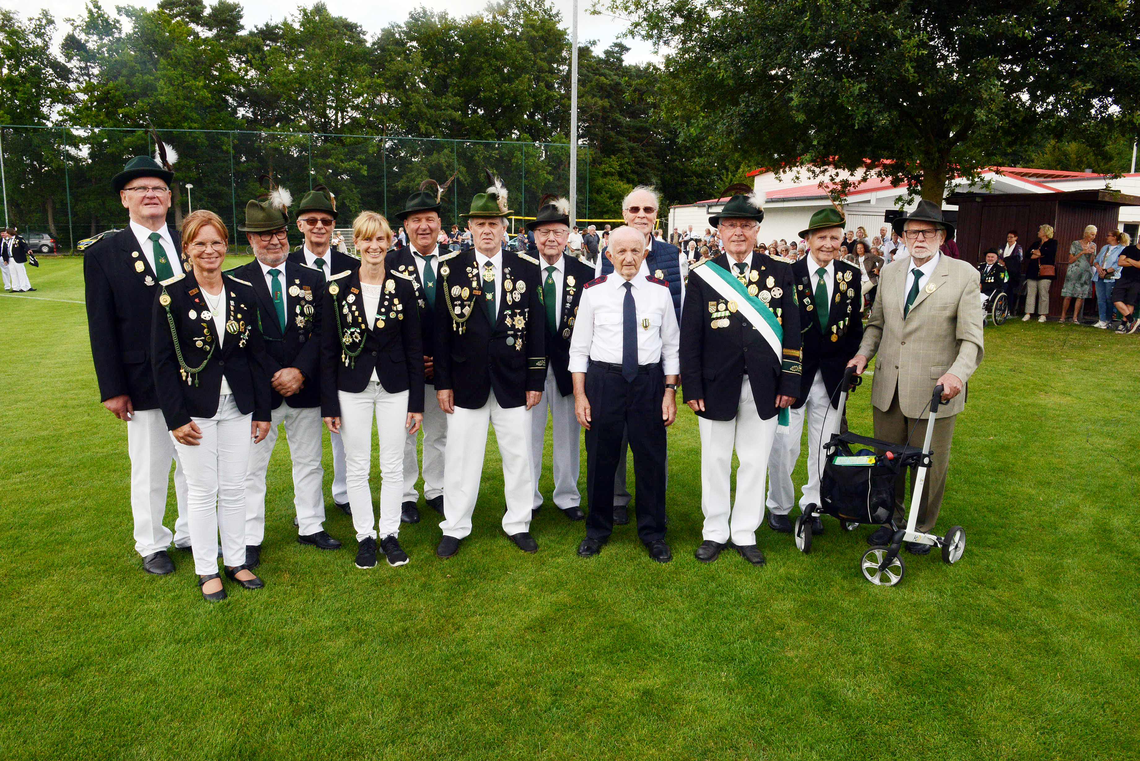 Mit den Orden des Bundesverbandes wurden Heinz Krebs (v.l.), Burkhard Willmann, Richard Proske, der stellvertretend Bezirksbundesmeister Jens Neitemeier, Friedhelm Brüggemann, Holger Osterwinter, Elisabeth Barkusky, Sebastian Stiens, Marius Eickhoff und Maik Hollenhorst ausgezeichnet.