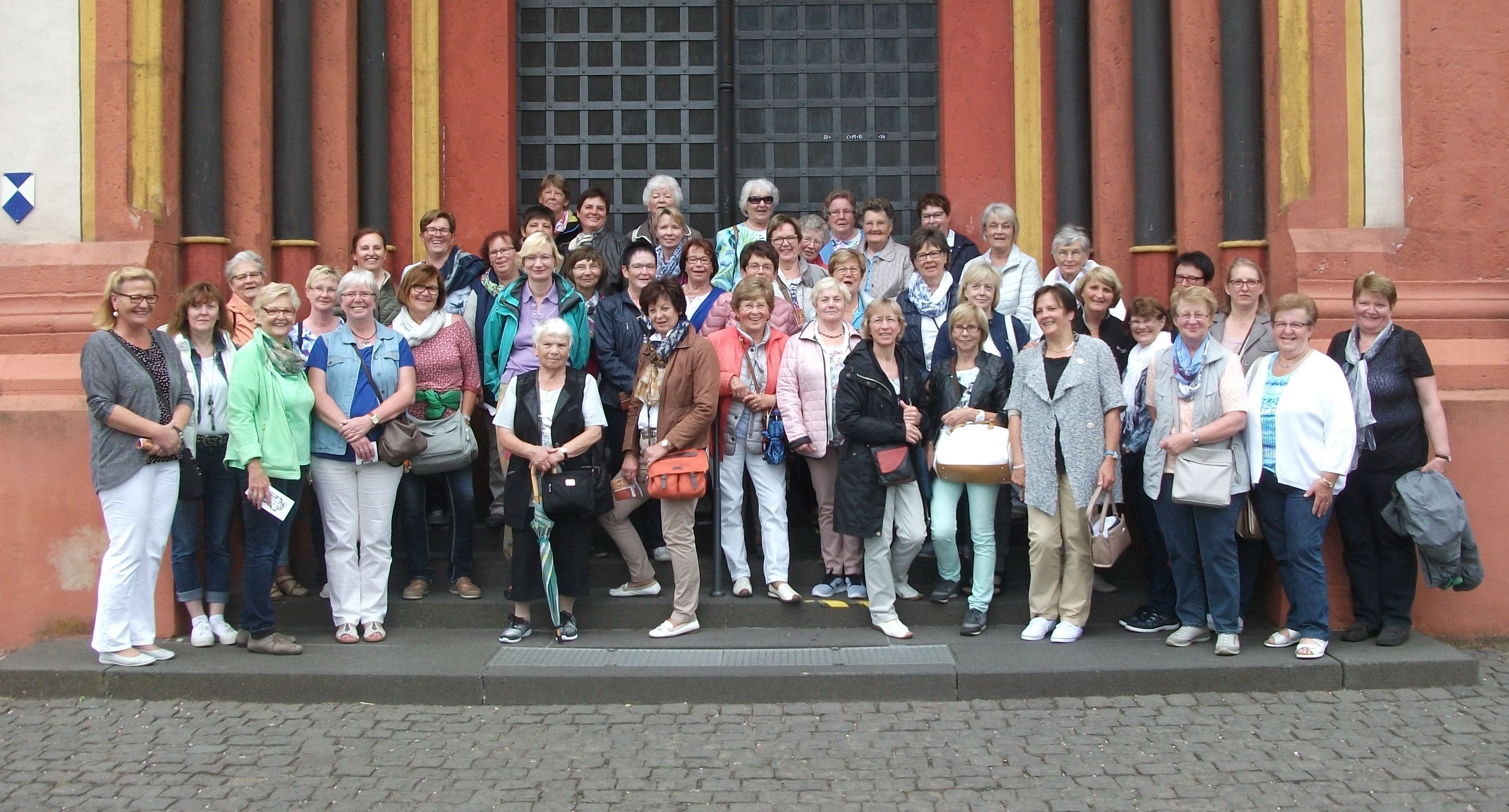 | Ausflugsgruppe: Die Tour-Teilnehmerinnen vor dem Limburger Dom. |
