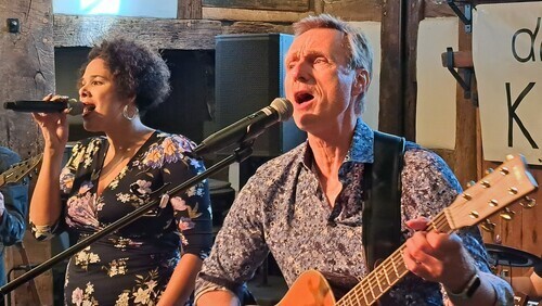 | Lisette Whitter (links) und Christoph Tiegel überzeugten die Zuhörer im Spexarder Bauernhaus mit ihren Vocals. |