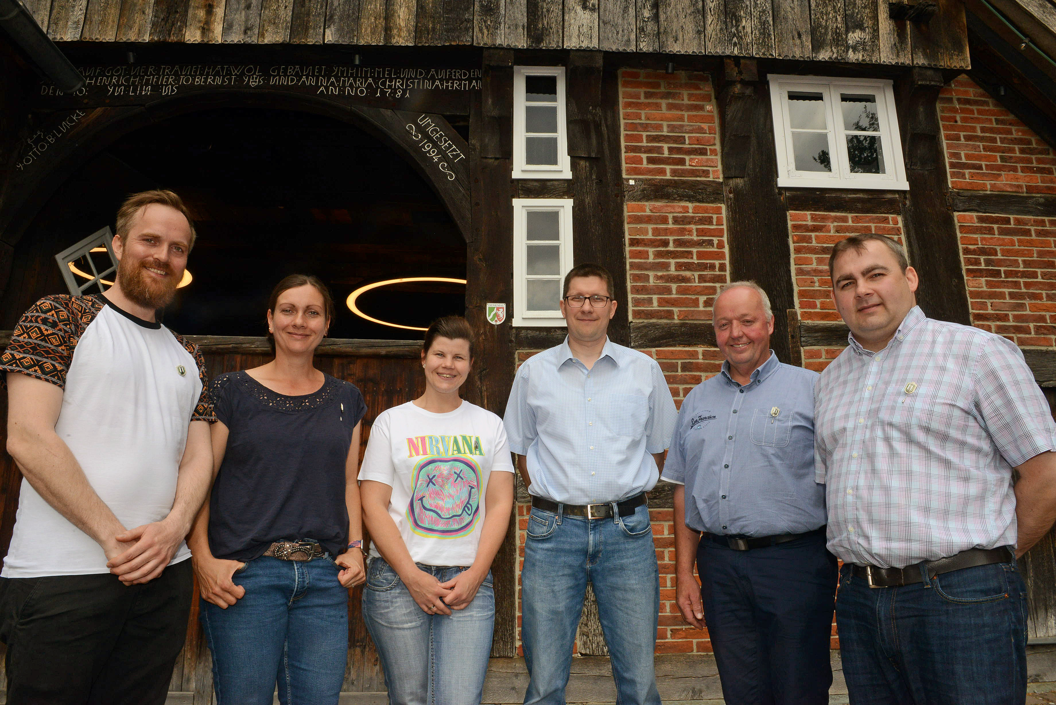 Der Brudermeister Maik Hollenhorst (vierter von links) mit den Jubilaren Tobias Leimann (v.l.), Lynne Stenzel, Anna Steinkamp, Klaus Horstkötter und Patric Puls. Foto: Markus Schumacher