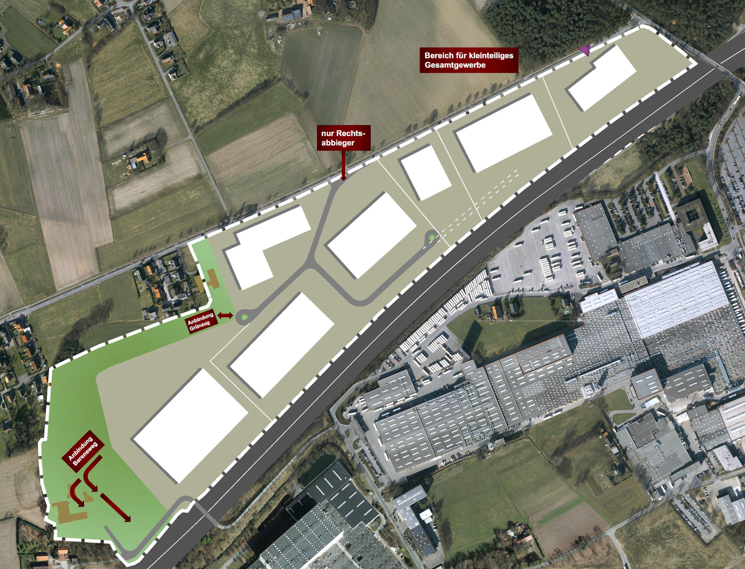Insgesamt sind im Flächennutzungsplan 25 Hektar verortet. Anfang des Jahres erhielt die Verwaltung aus der Politik den Auftrag, eine Teilfläche von 13 Hektar zu entwickeln. Hintergrund: Außer kleineren Restbeständen kann die Stadt bauwilligen Unternehmen kaum Angebote machen. Allerdings erfolgte der Auftrag unter strengen Maßgaben: Dazu gehörten eine Erschließung, die nicht über die Verler Straße von Westen erfolgt, sowie Lärmschutz entlang der Autobahn. Die ersten ansiedlungswilligen Interessenten sind bei der Stadt schon vorstellig geworden, darunter der Möbelunternehmer Norbert Wöstmann, der seinen Firmensitz vom Kolbeplatz dorthin verlegen möchte und ein Messezentrum plant.