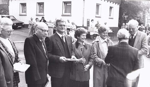 Zonenrandgebiet hieß das damals. Und es war reiner Zufall, dass Günter Feuerborn und Wilfried Jacobfeuerborn 1977 mit ihren Familien in das Rhöndorf Simmershausen nahe der ehemaligen Deutschen Demokratischen Republik (DDR) kamen. „Wir wollten einfach mit unseren neuen Autos einen kleinen Abstecher in das Mittelgebirge machen“, erzählt Günter Feuerborn später von dem ersten Urlaub in Simmershausen im Landkreis Fulda. In der Gaststätte „Zur Krone“ wurde übernachtet. Niemand hätte damals geahnt, dass sich aus dem ersten Zusammentreffen mit dem Wirt Wolfgang Glotzbach und der Bekanntschaft mit dem 600-Einwohner-Ort eine echte Partnerschaft entwickeln würde. Schon 1979 wurde in Spexard der Freundeskreis des Rhönklubs Simmershausen auf Initiative von Gerda Feuerborn gegründet, die zur ersten Vorsitzenden gewählt wurde. Später übernahm Günter Westerbarkei den Vorsitz, und seit dem 18. November 1999 führt Albert Tigges die Geschäfte. 50 Spexarder werden im Rhönklub Simmershausen als Mitglieder geführt. Der Rhönklub ist ein Wanderverein, der sich für die Erhaltung des Brauchtums in der Rhön und für den Naturschutz einsetzt. Der Gütersloher Bundestagsabgeordnete und parlamentarische Staatssekretär im Bundesministerium für innerdeutsche Beziehungen, Dr. Ottfried Hennig (CDU), sorgte auf Initiative von Heinrich Feuerborn dafür, dass der Ort an der Zonengrenze in ein Dorferneuerungsprogramm der Bundesrepublik aufgenommen wurde. Heinrich Feuerborn wurde in Simmershausen sehr geschätzt. Jahrelang verbrachte er dort seinen Sommerurlaub. Seine Verbundenheit mit dem Sportverein SG Simmershausen hat ihn viele Jahre veranlasst, der ersten Fußballmannschaft nach einem Sieg einen „Stiefel“ Bier zu spendieren.