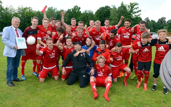 Nach dreijähriger Abwesenheit kehrt der SV Spexard in die Fußball-Westfalenliga zurück. Die „Spechte“ setzten sich gestern Nachmittag im entscheidenden direkten Duell verdient mit 2:0 (1:0) beim Hövelhofer SV durch und steigen als Tabellenzweiter direkt auf. Waren einige der Spexarder Anhänger angesichts der Erfahrungen aus der Vergangenheit - im Vorjahr unterlagen die favorisierten Spexarder in der Aufstiegsrelegation überraschend mit 1:2 gegen Coesfeld - vielleicht noch mit Skepsis ins Spiel gegangen, so durften sie schon nach wenigen Minuten aufatmen. Charbel Abdullahat setzte auf der linken Seite zu einer schönen Einzelleistung an, ließ seinen Gegenspieler stehen und schoss zum 1:0 ins lange untere Eck ein (9.). Damit waren nun endgültig die Gastgeber gefordert, denn den „Spechten“ hätte bereits ein Unentschieden zur Verteidigung des zweiten Platzes ausgereicht. Fortan entwickelte sich vor 500 Zuschauern im Waldstadion eine intensive Auseinandersetzung, in der die Spexarder die wichtigen Zweikämpfe zumeist für sich entschieden. Lediglich bei Daniel Lienens Vorstoß zur Grundlinie (20.) brannte es einmal im Strafraum des SVS, der den Hövelhofer SV ansonsten erfolgreich vom eigenen Tor fernhielt. „Wir sind hier sehr konzentriert aufgetreten“, lobte auch Spexards sportlicher Leiter Klaus Rickmann, den Auftritt der Mannschaft. Diese übernahm nach der Pause immer mehr das Kommando und suchte die vorzeitige Entscheidung. Philipp Kunde (50.) und Charbel Abdullahat im Doppelpass mit Marco Gieseker (67.) hatten das zweite Tor vor Augen. Der Hövelhofer SV meldete sich noch einmal mit einem gefährlichen Schuss von Nico Thieschnieder zurück (70.), ehe die Gastgeber dann ihrem zunehmend rustikalen Stil Tribut zollten. Binnen zehn Minuten mussten der eingewechselte Willi Lemke (79./Gelb-Rot), Marius Brummel (88./Gelb-Rot) und Pascal Fahl (90./Rot) das Feld räumen. „Unsere Überzahl haben wir dann leider schlecht ausgespielt.“ Spexards Mannschaftskapitän Stefan Forthaus, mit den „Spechten“ vor drei Jahren ab- und nun wieder aufgestiegen, musste sich bis zur Nachspielzeit gedulden, ehe Marco Gieseker für die endgültige Entscheidung sorgte. Nach einem Pfostenschuss von Justin Kemper drückte er zum 2:0 ein, und der Jubel kannte anschließend keine Grenzen mehr.