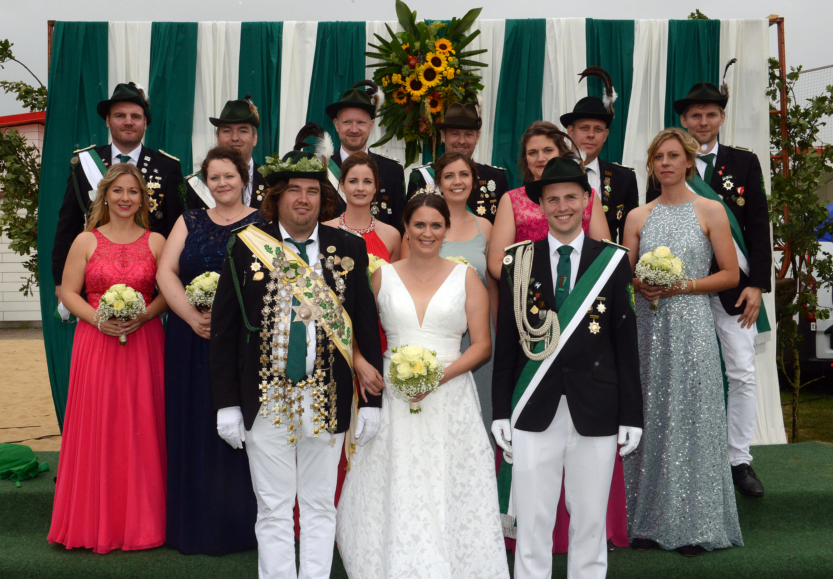 Die Throngesellschaft der Schützenbruderschaft St. Hubertus Spexard um die Königin Theresa I. Westerbarkey und ihrem Königsgemahl Malte Westerbarkey nimmt am Samstag Abschied von der Regentschaft.
