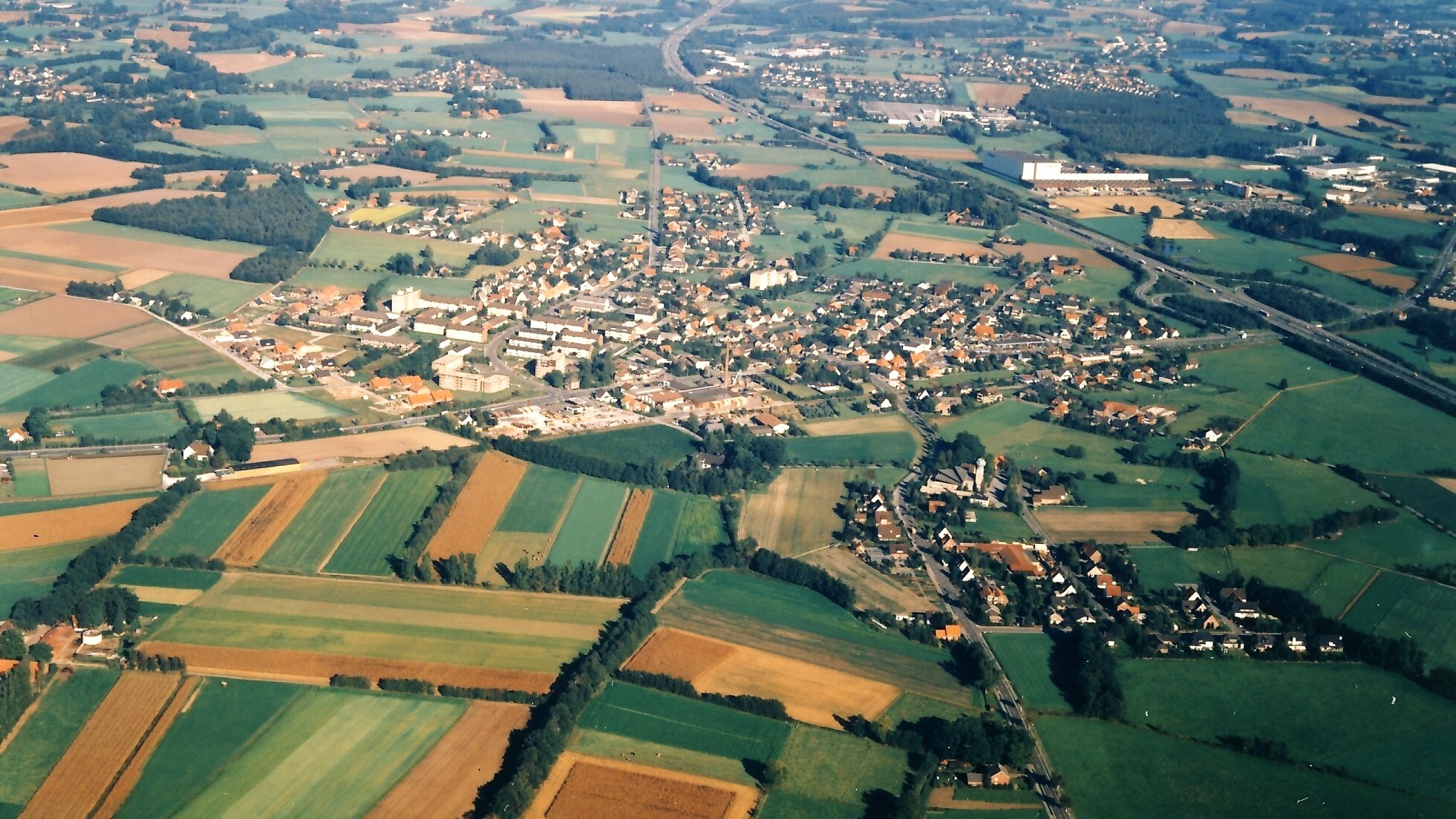 | Der Bereich um die Verler Straße auf einem Luftbild aus den 1980er Jahren. |