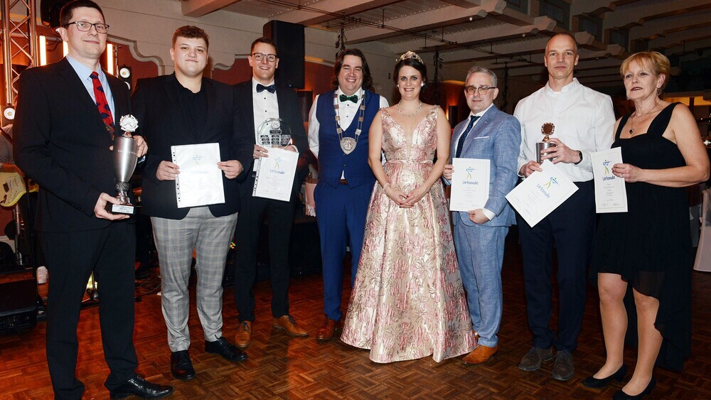 Das Bergfest für die Spexarder Königin Theresa I. Westerbarkey und ihrem Königsgemahl und Gatten Malte I. Westerbarkey wurde im Saal Wimmelbücker im Rietberger Stadtteil Druffel zu einem gelungenen Winterball. Auch wenn die 4. Königin der St. Hubertus Schützenbruderschaft ihren Majestäten-Orden erst mit Verspätung in den kommenden Tagen neu ausgehändigt bekommt, feierten die Gäste bis in die tiefe Nacht zu den Klängen des Senne-Duo aus Hövelhof. Beim Anheften des Ordens durch Brudermeister Maik Hollenhorst war der Anhänger für das Schmuckstück defekt. Für Theresa I. und dem ganzen Throngefolge kein Beinbruch. Das Anheften wird Hollenhorst gerne nachholen. Der kleinere Orden für König Malte I. passte hingegen wie angegossen auf dem königsblauen Anzug. Die Sause nahm ihren Anfang und auch das Jungschützenkönigspaar Leon de las Herras und Lina Sophie Blomberg waren mittendrin im Festgeschehen.