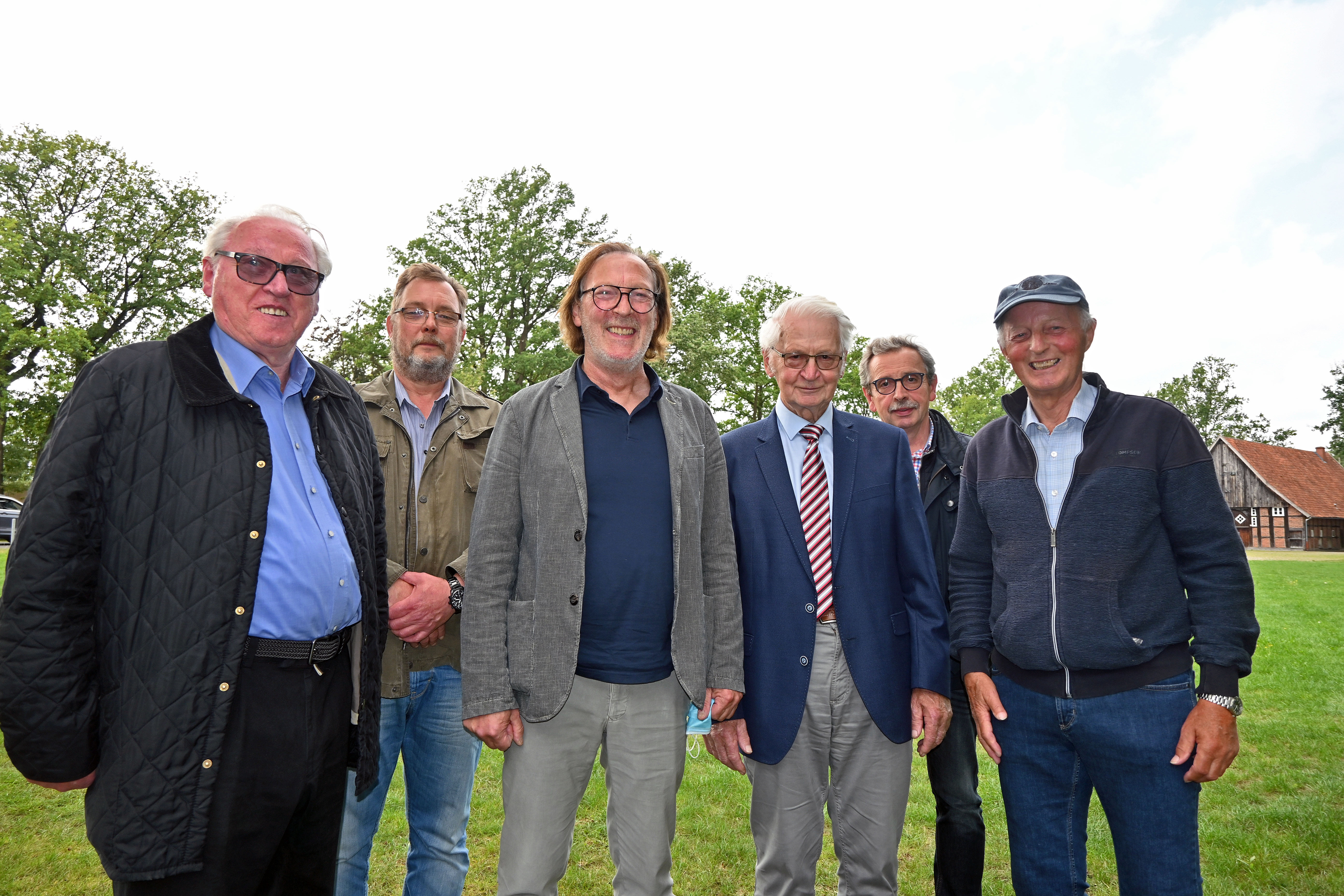 Die verdienten Mitglieder Friedhelm Weßling (von links), Michael Frank, Schützenkönig Günter Melzer, Walter Westhoff, Klaus Leipert und Walter Drücker.